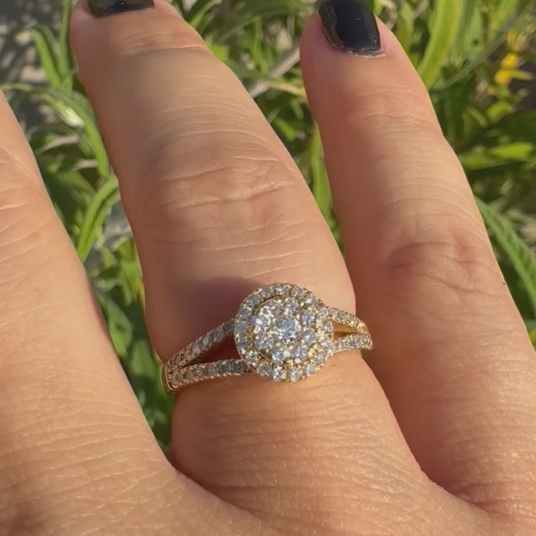 טבעת זהב צהוב 14 קראט משובצת יהלומים