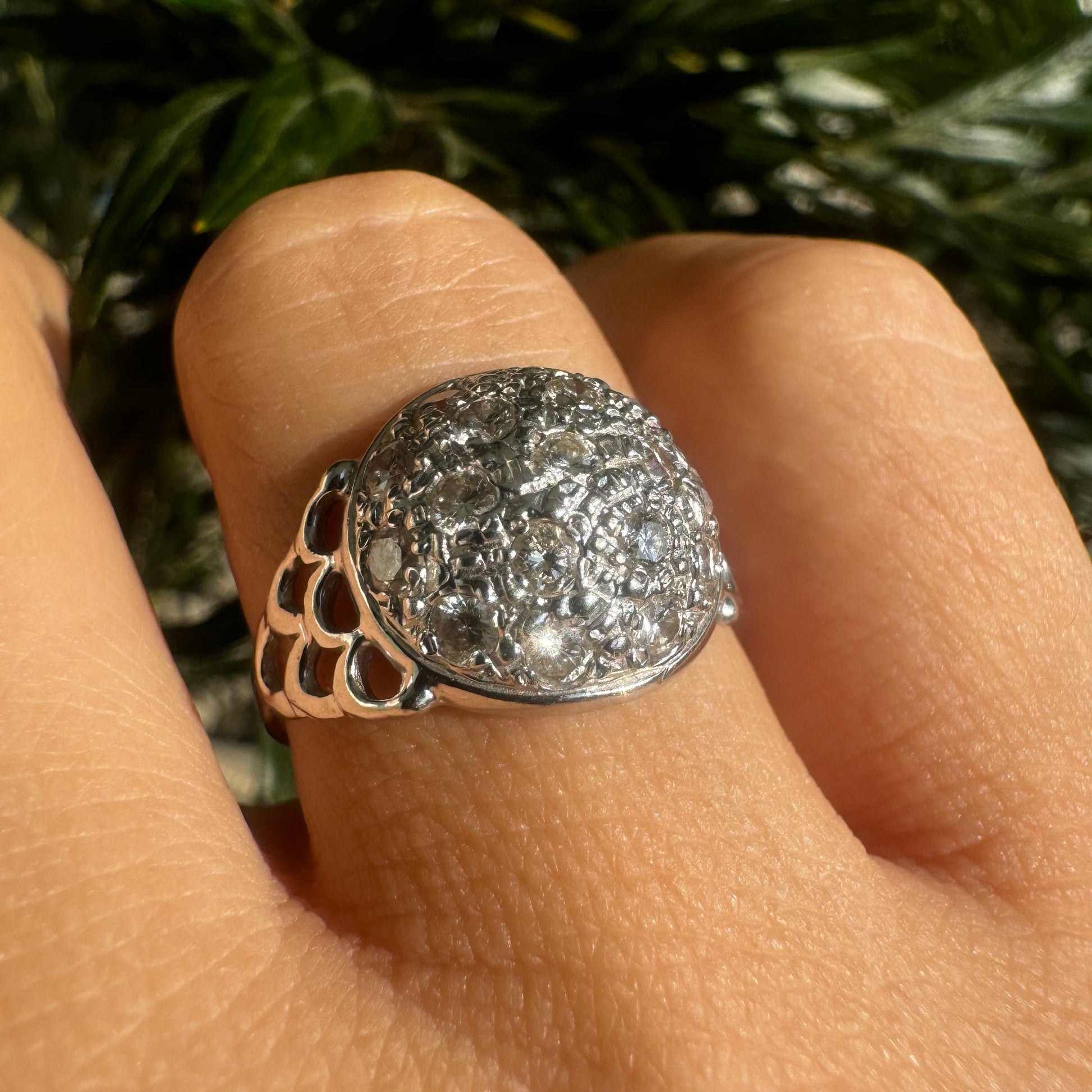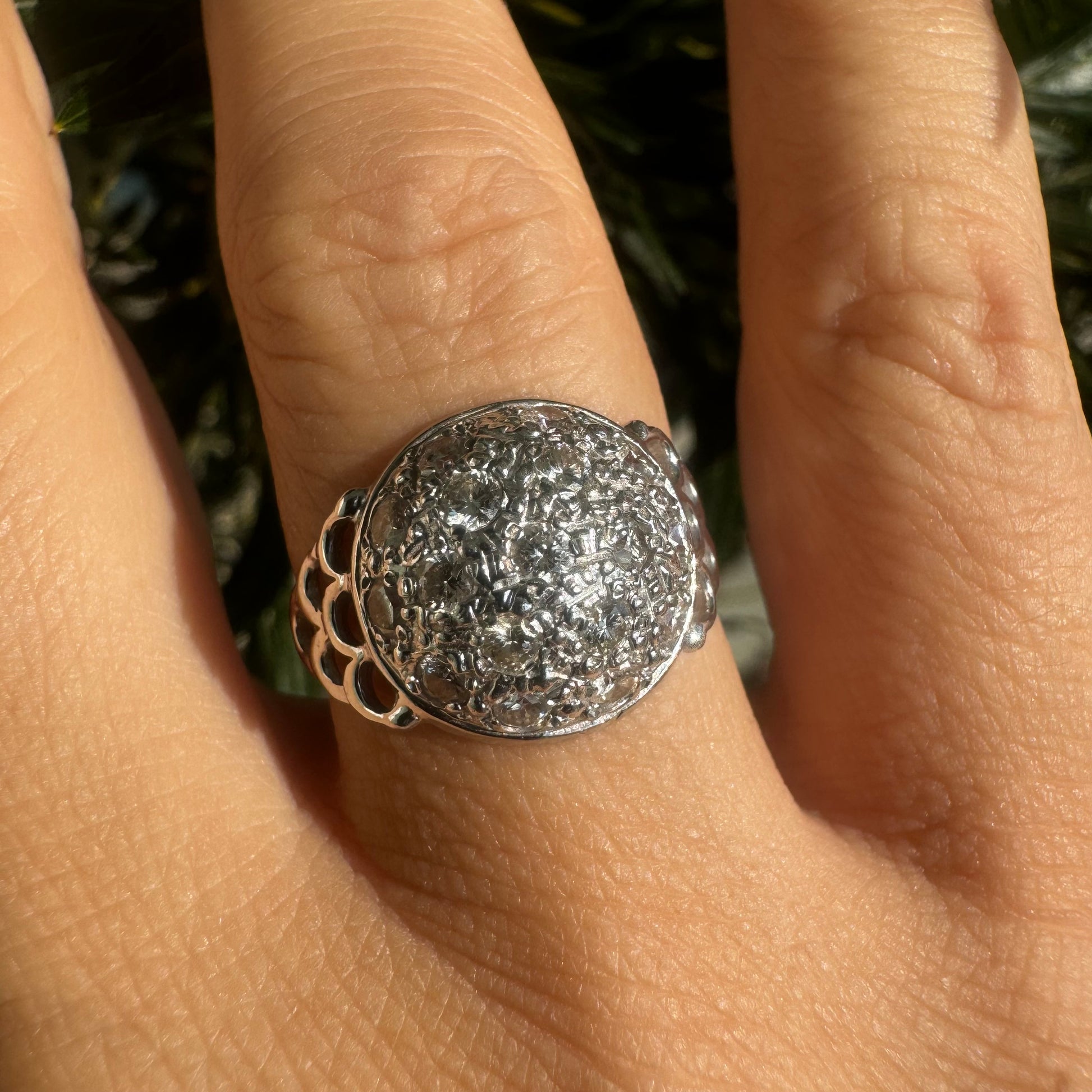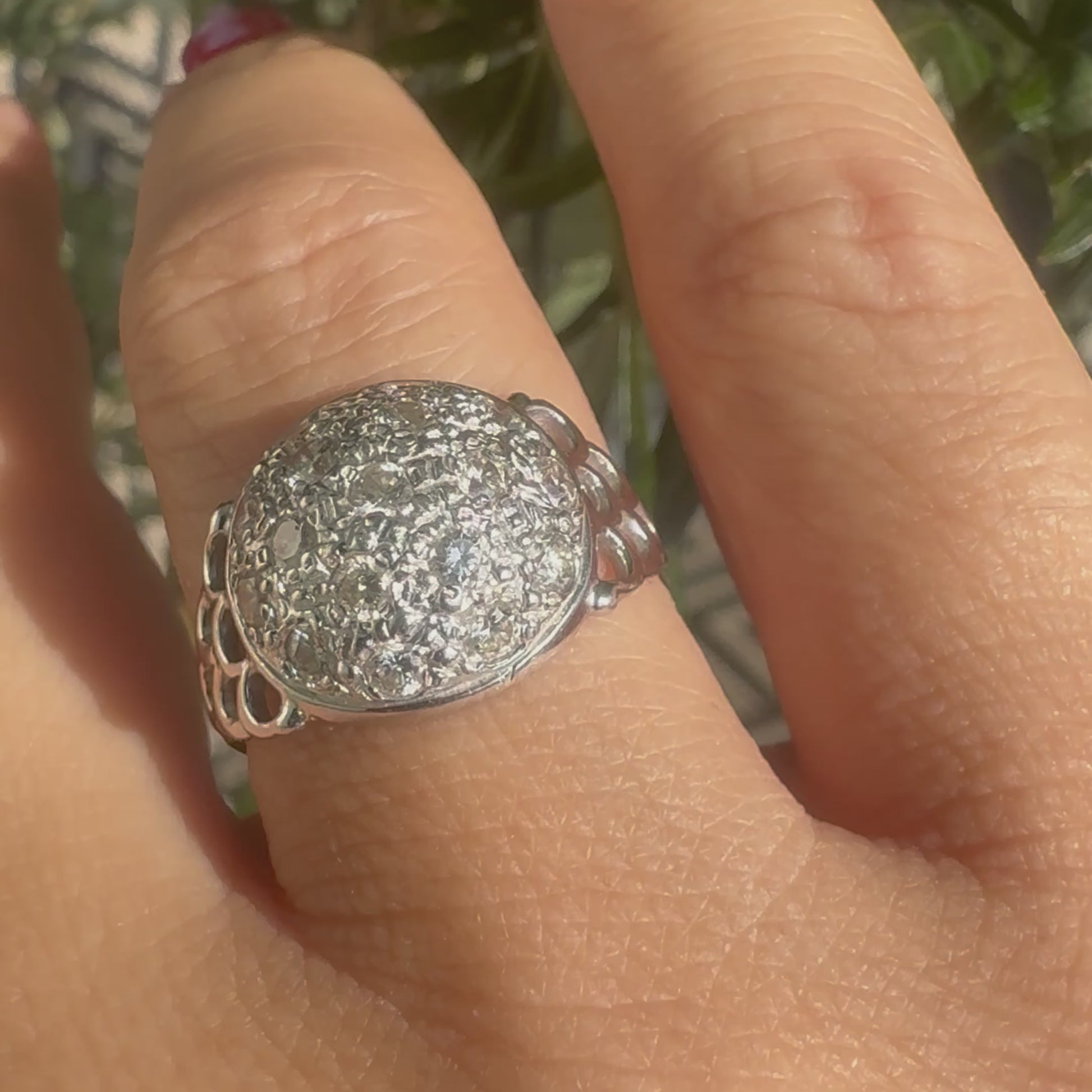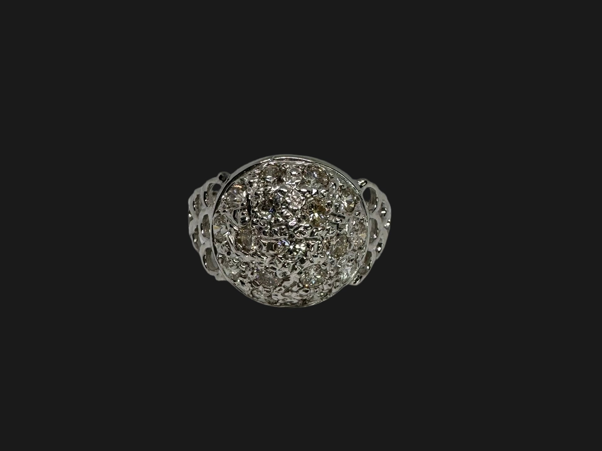 טבעת זהב לבן 14 קראט משובצת יהלומים