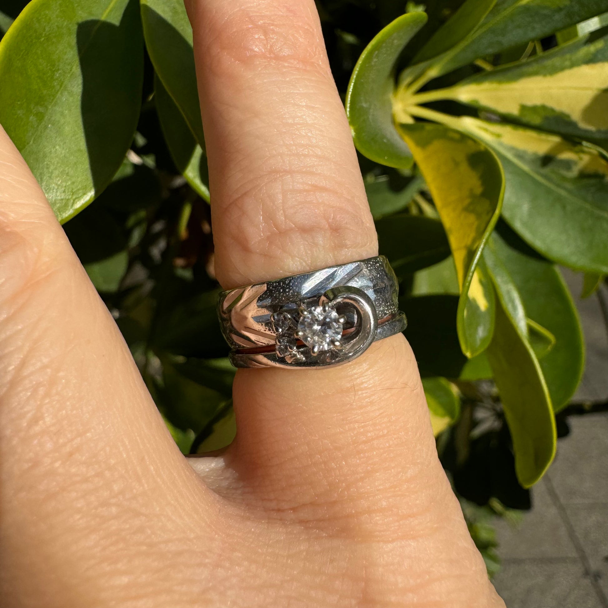 טבעת בעלת בסיס עבה וגס לעומת שיבוץ יהלומים עדין - שילוב שיוצר טבעת מיוחדת במינה