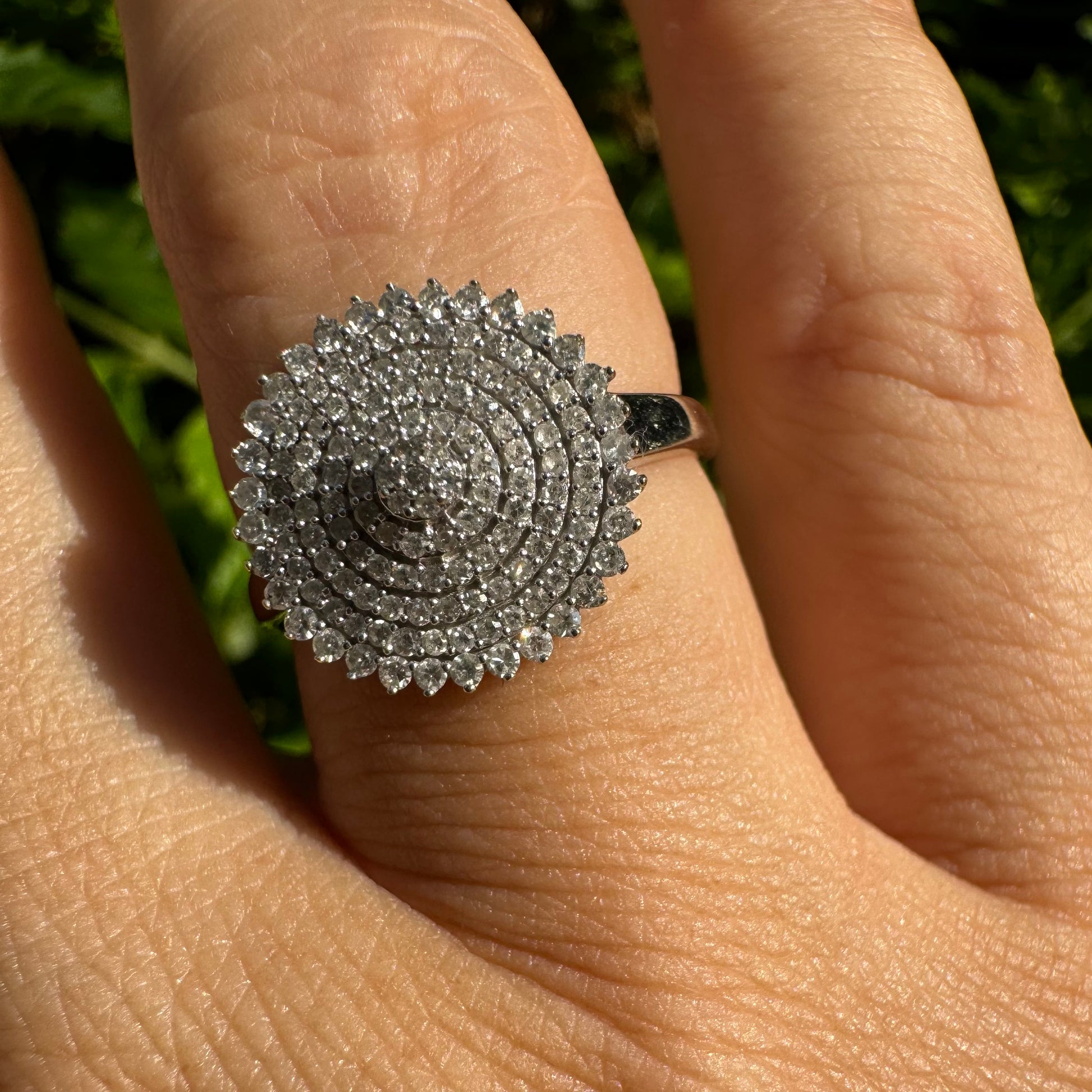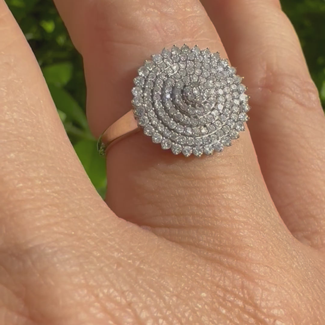 14K white gold ring featuring a stunning concentric pavé diamond design