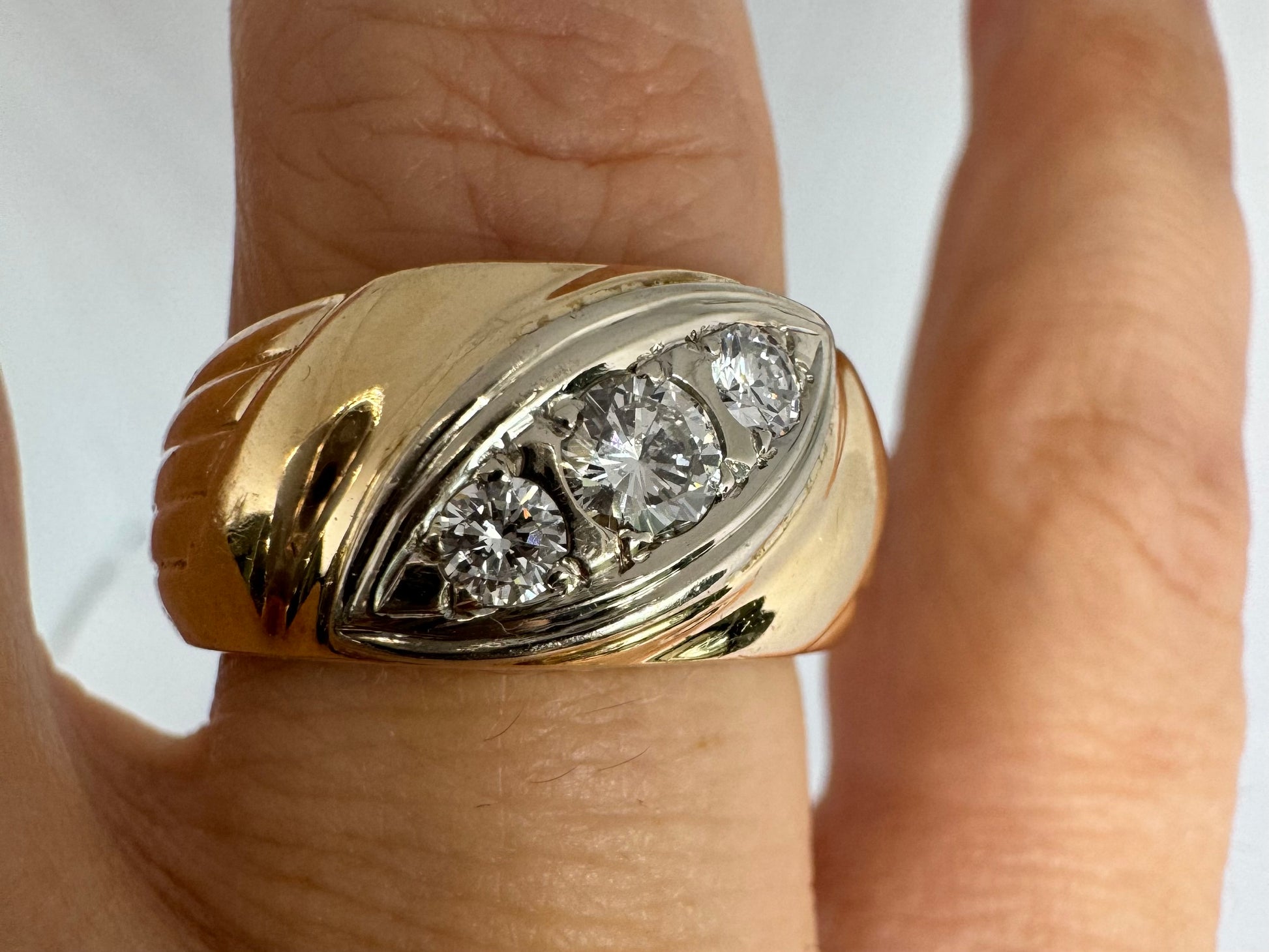 14K gold ring set with diamonds