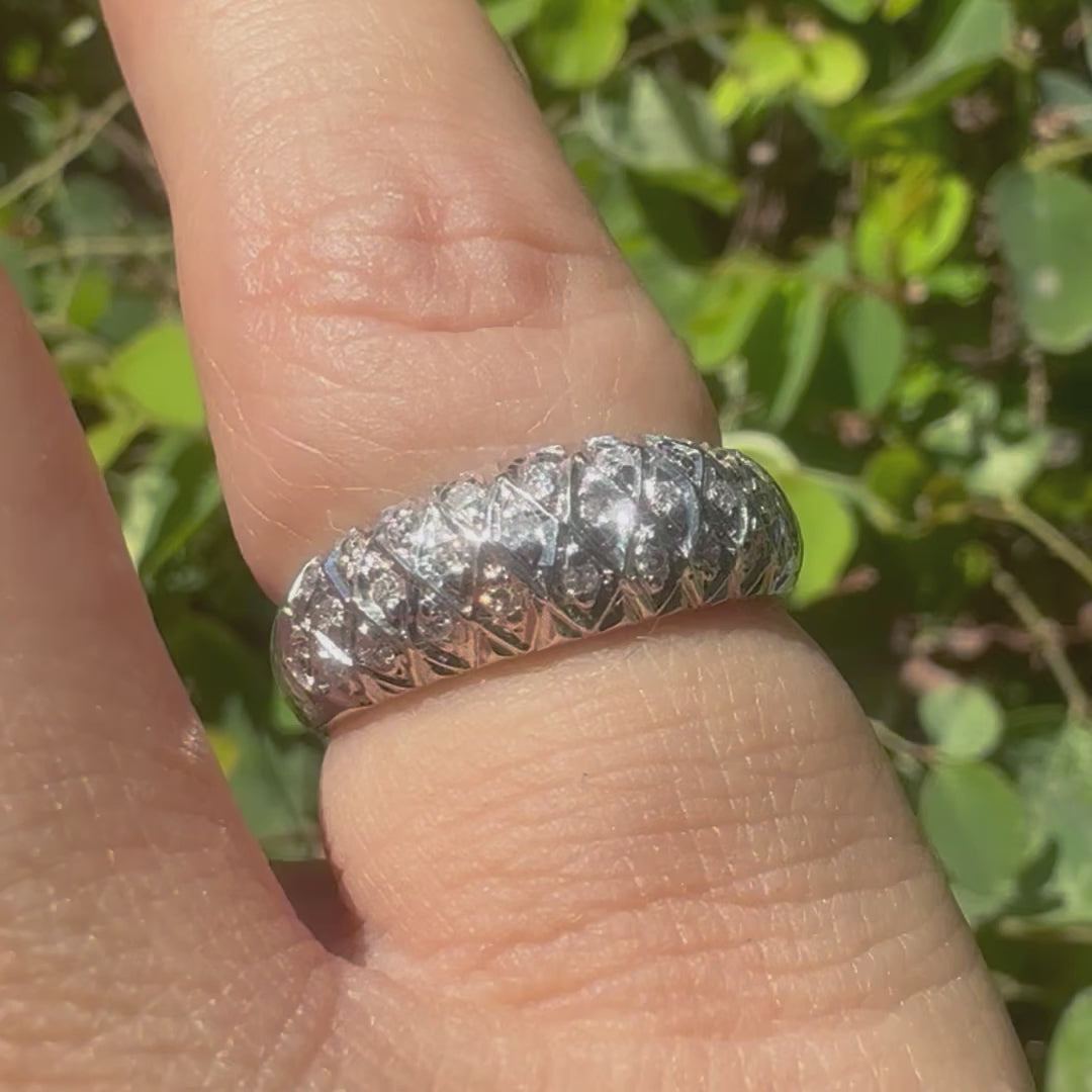 טבעת זהב לבן 14 קראט משובצת יהלומים
