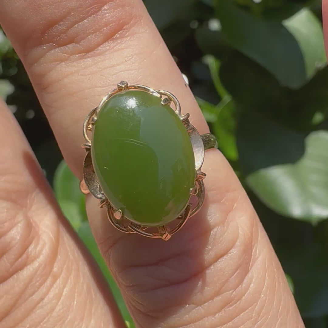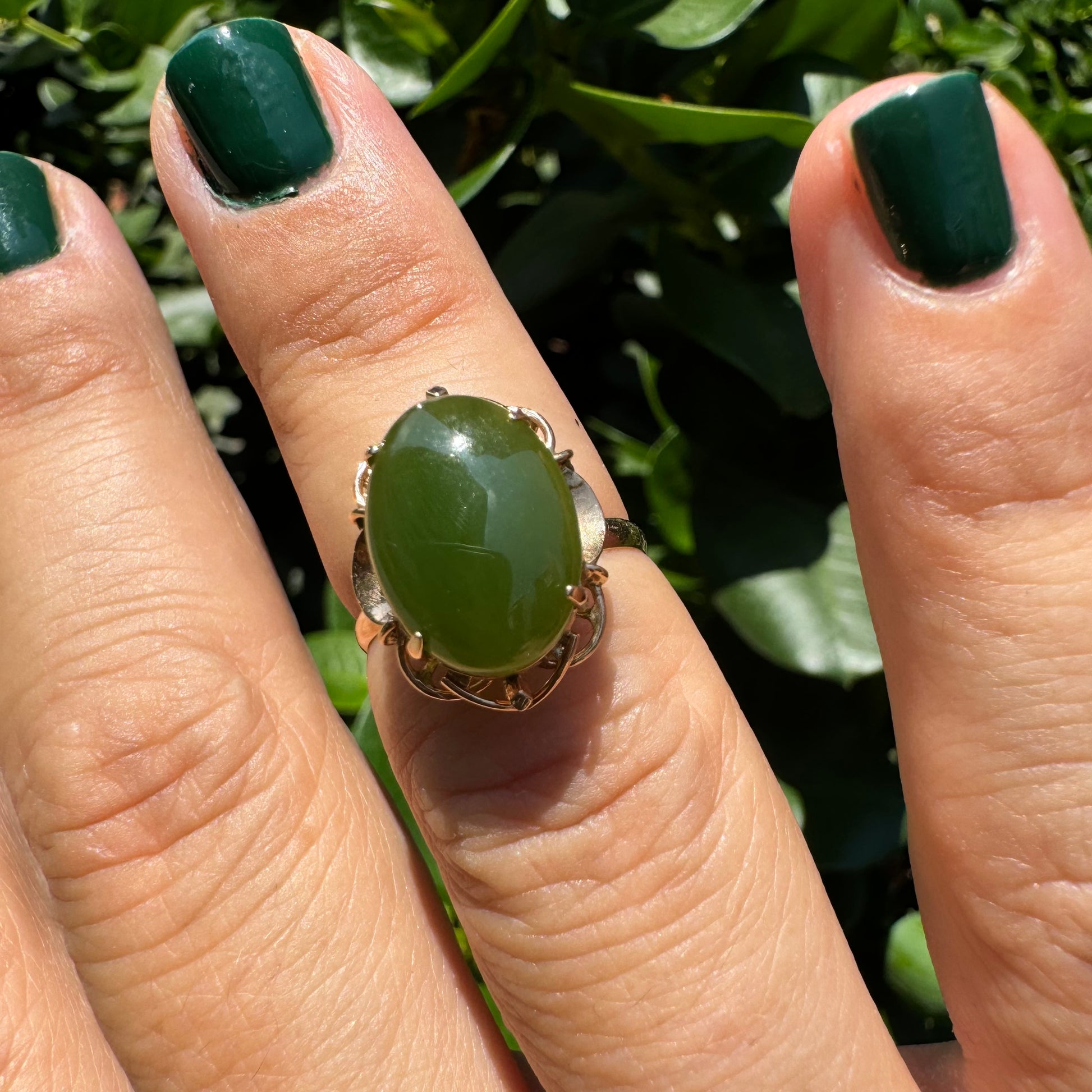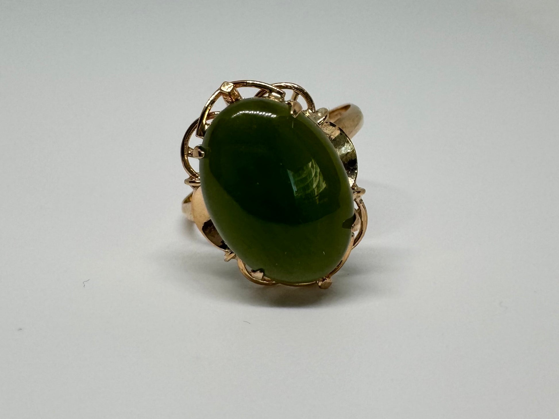 טבעת זהב צהוב 14K משובצת אבן ג'ייד ירוקה