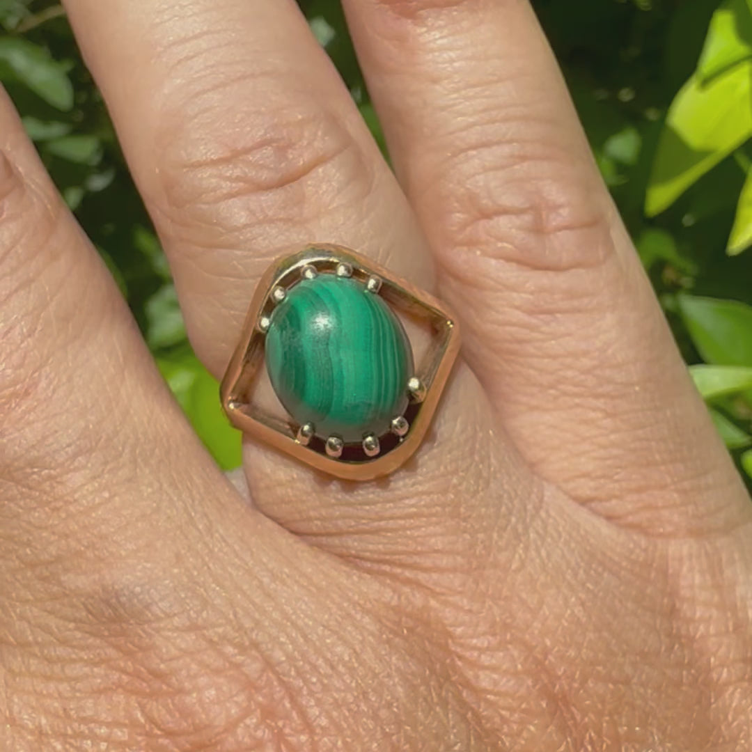 טבעת זהב צהוב 14K משובצת מלאכיט.