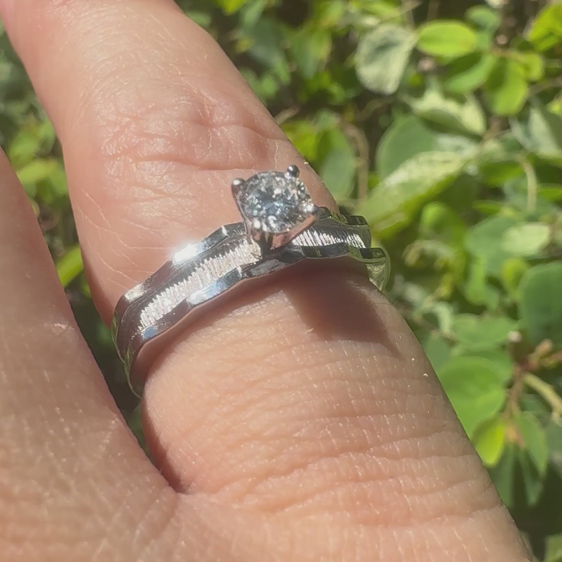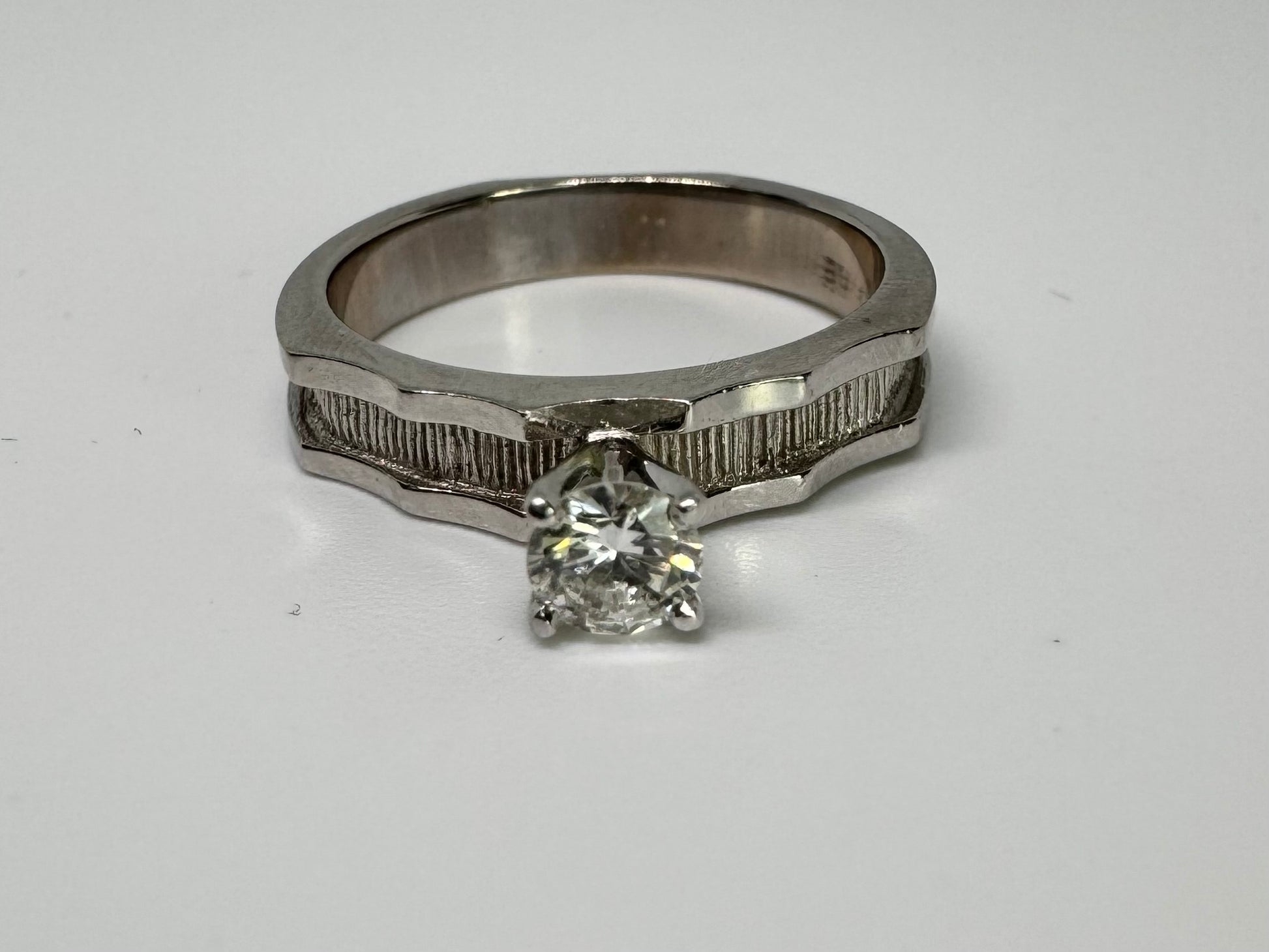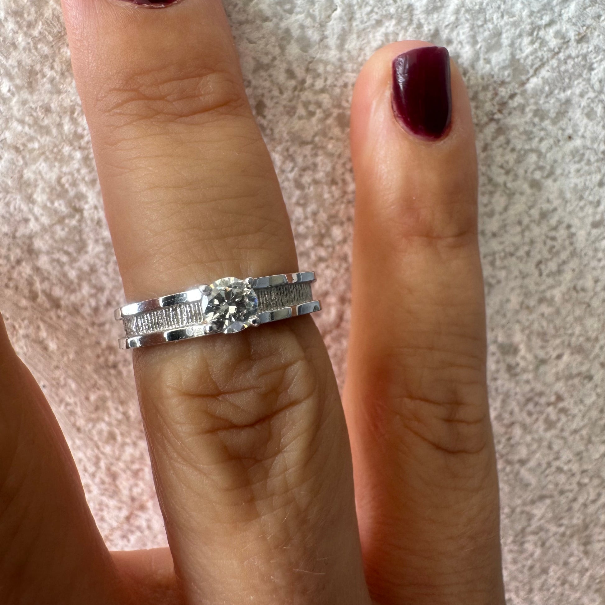 טבעת זהב לבן 14 קראט משובצת יהלום מרכזי