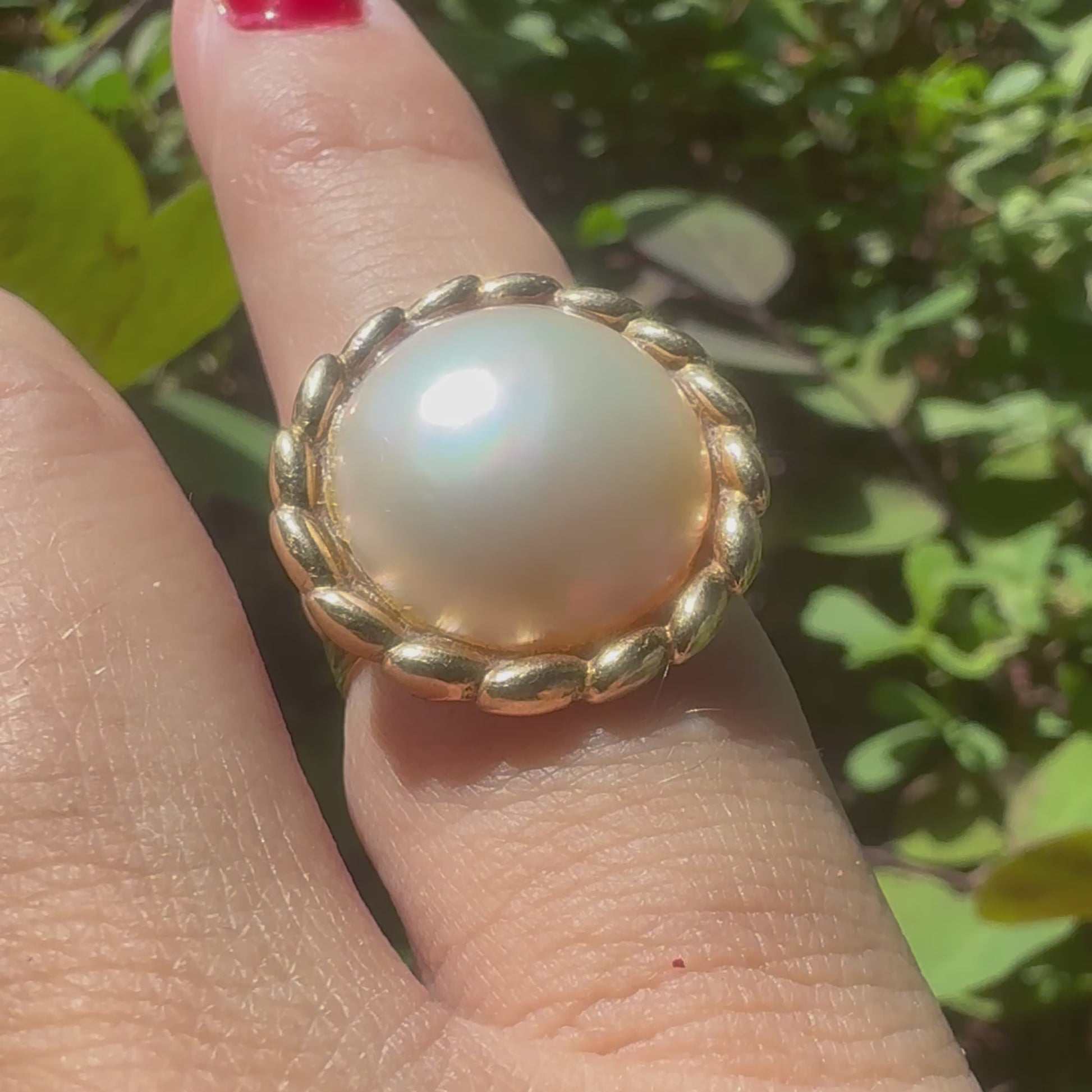 טבעת זהב צהוב משובצת פנינה גדולה במרכז