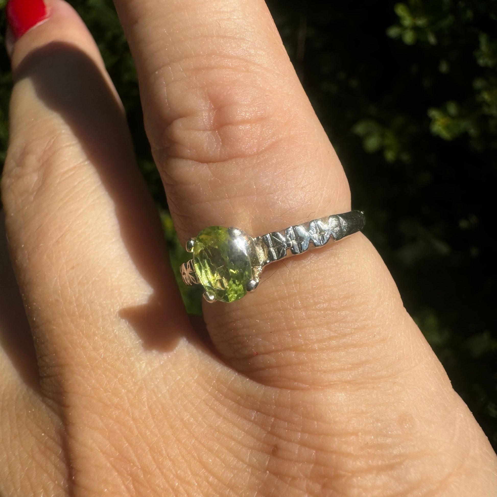 14K white gold ring set with Peridot