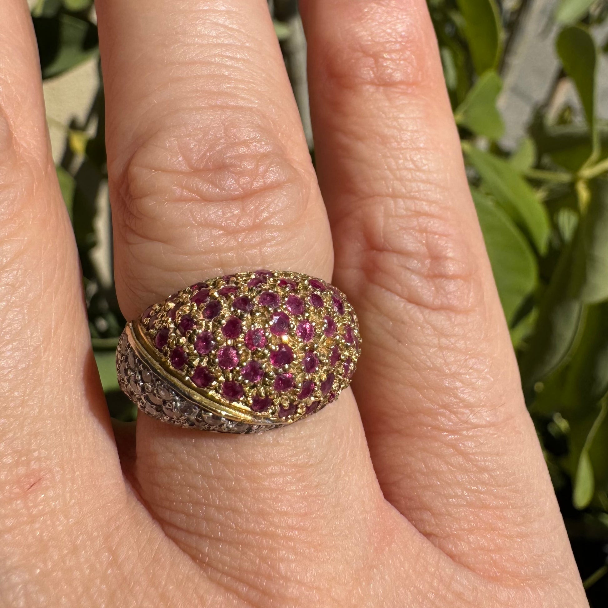 14K gold dome ring pavé-set with Diamonds and vivid Rubies in a striking two-tone design