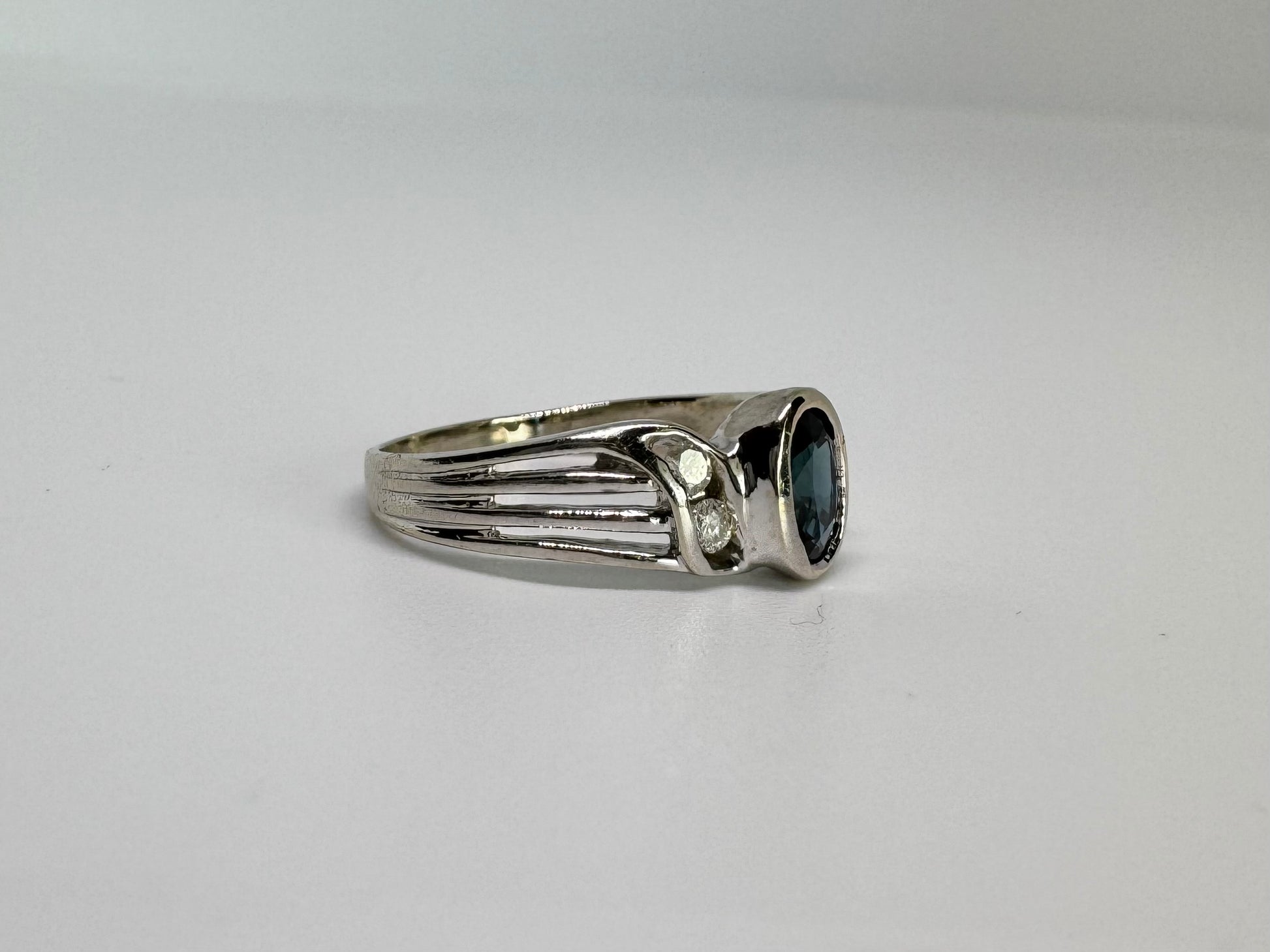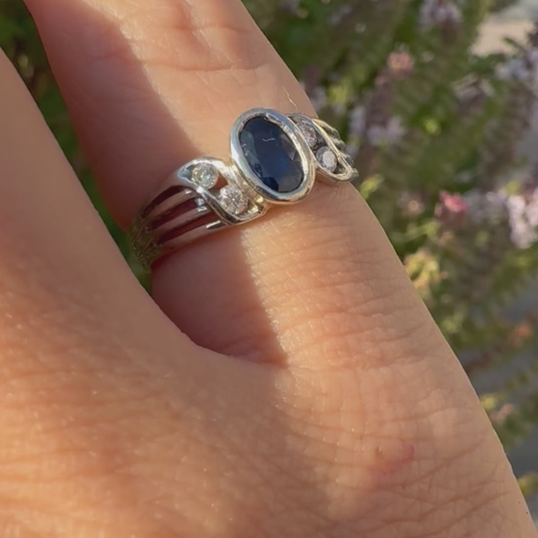 14K white gold ring set with Sapphire & Diamonds