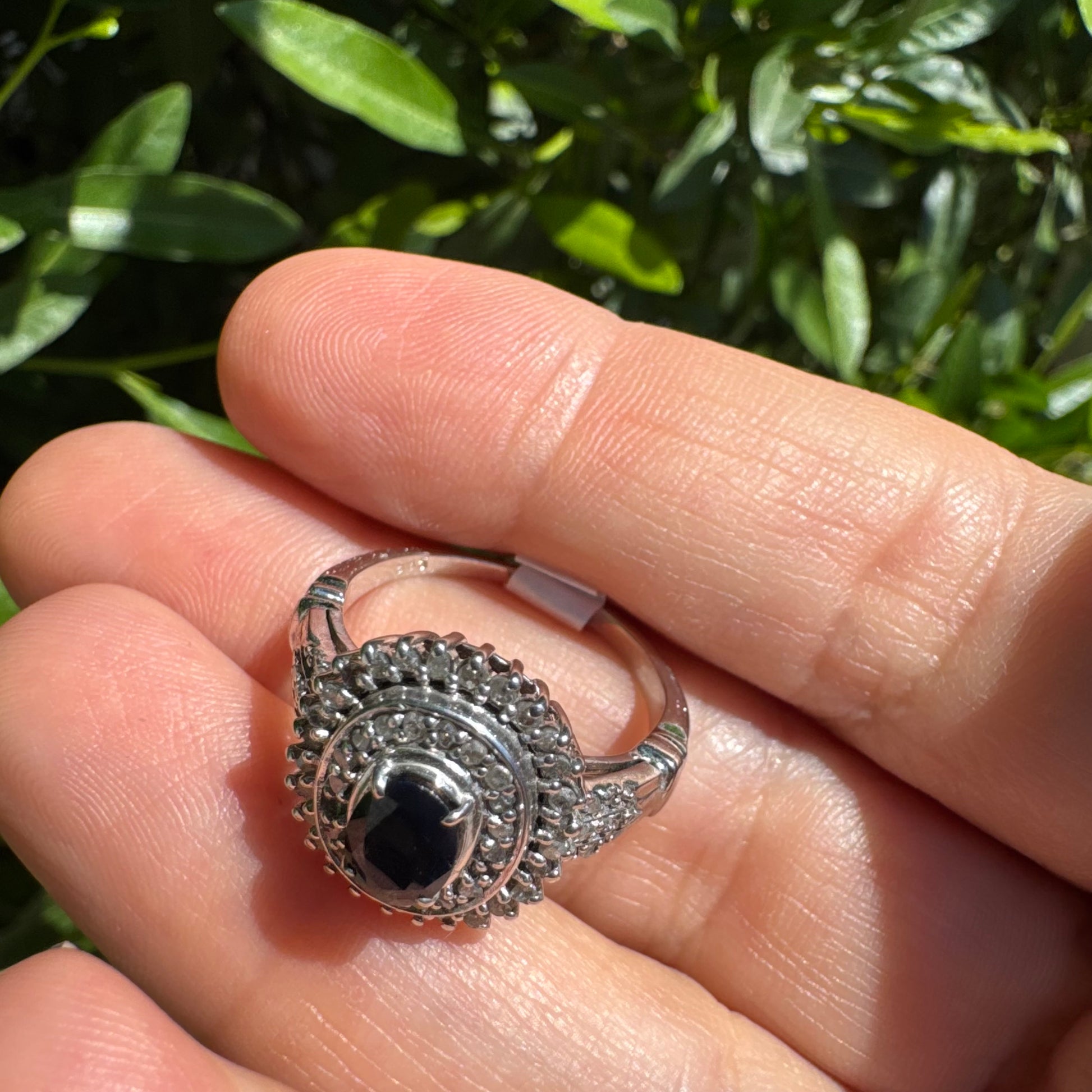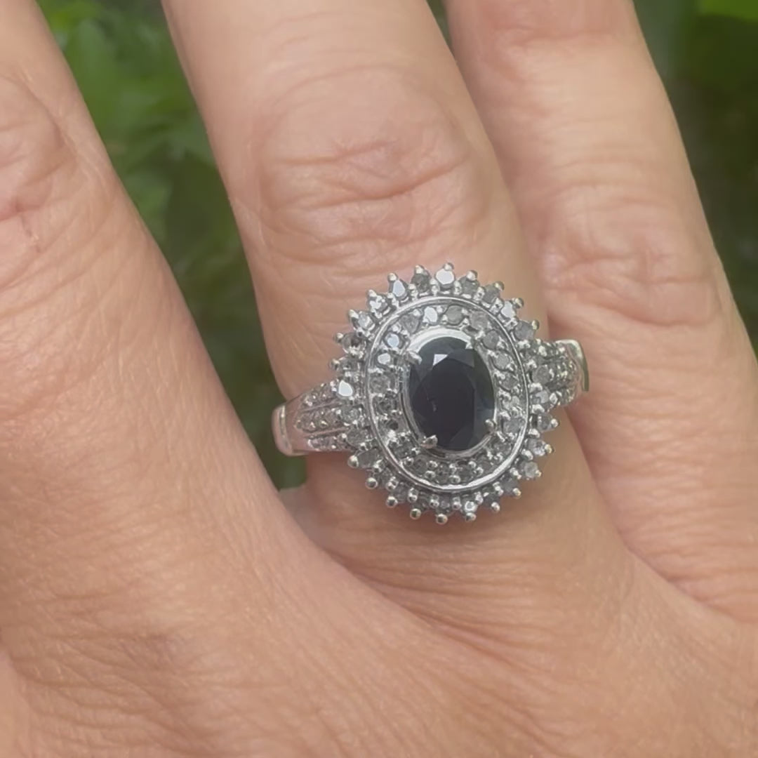 טבעת זהב לבן 14K משובצת ספיר ויהלומים