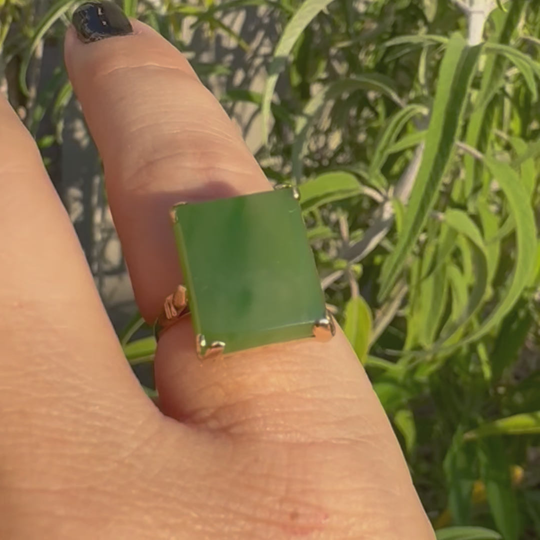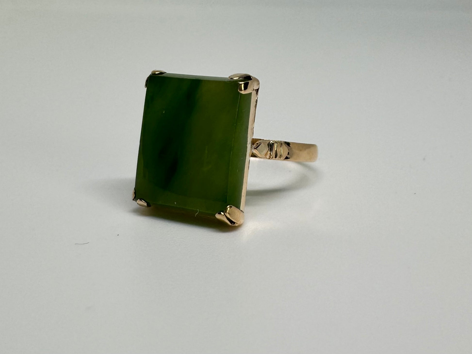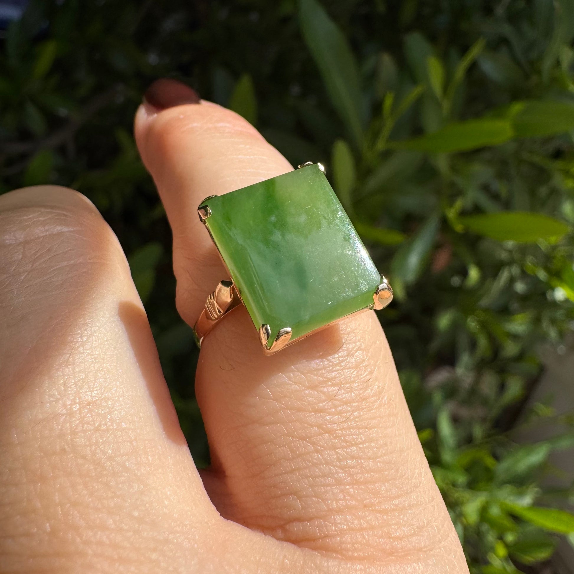 טבעת זהב צהוב, 14 קראט, משובצת אבן גייד בצבע ירוק חלומי