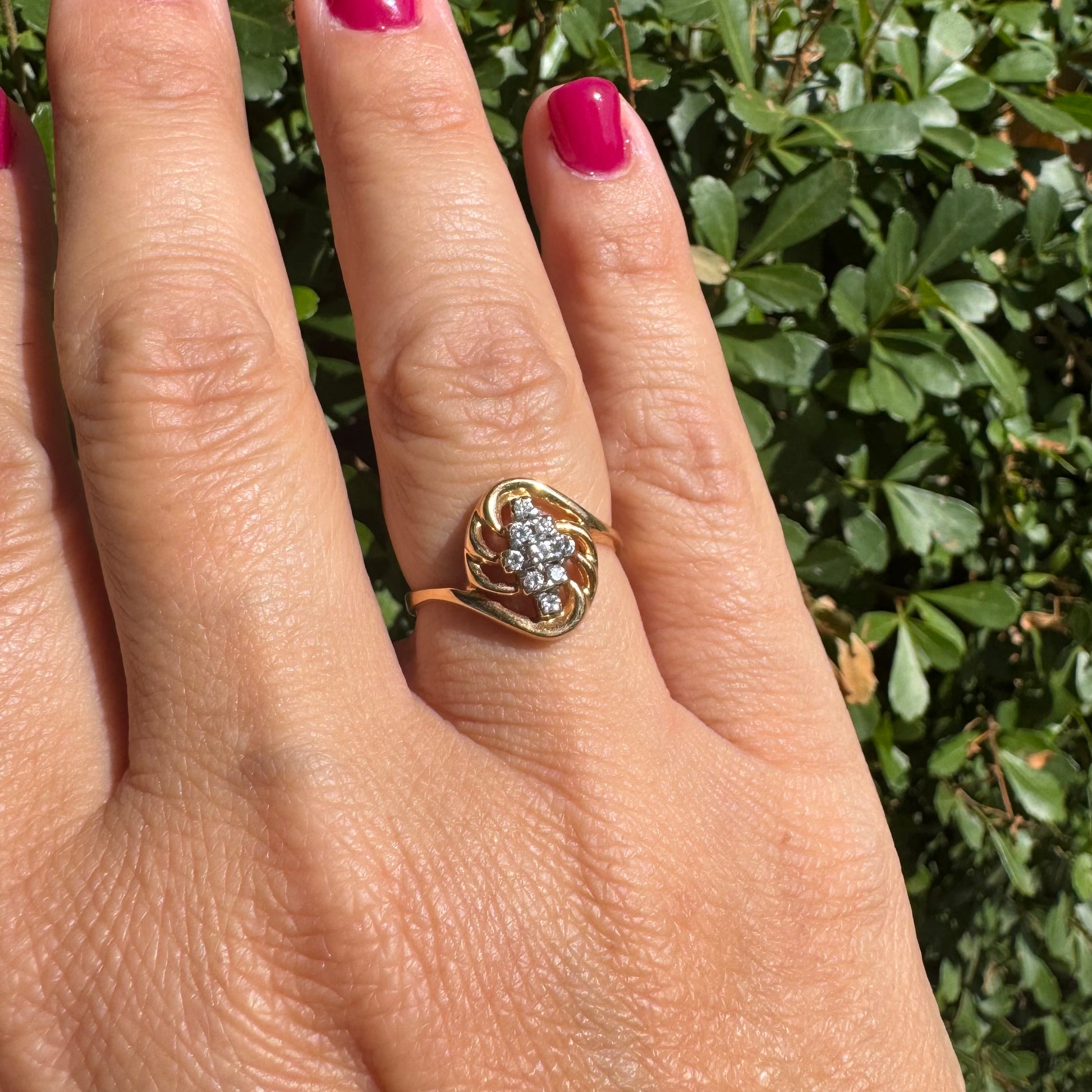 טבעת זהב צהוב 14 קראט משובצת 9 יהלומים במרכז