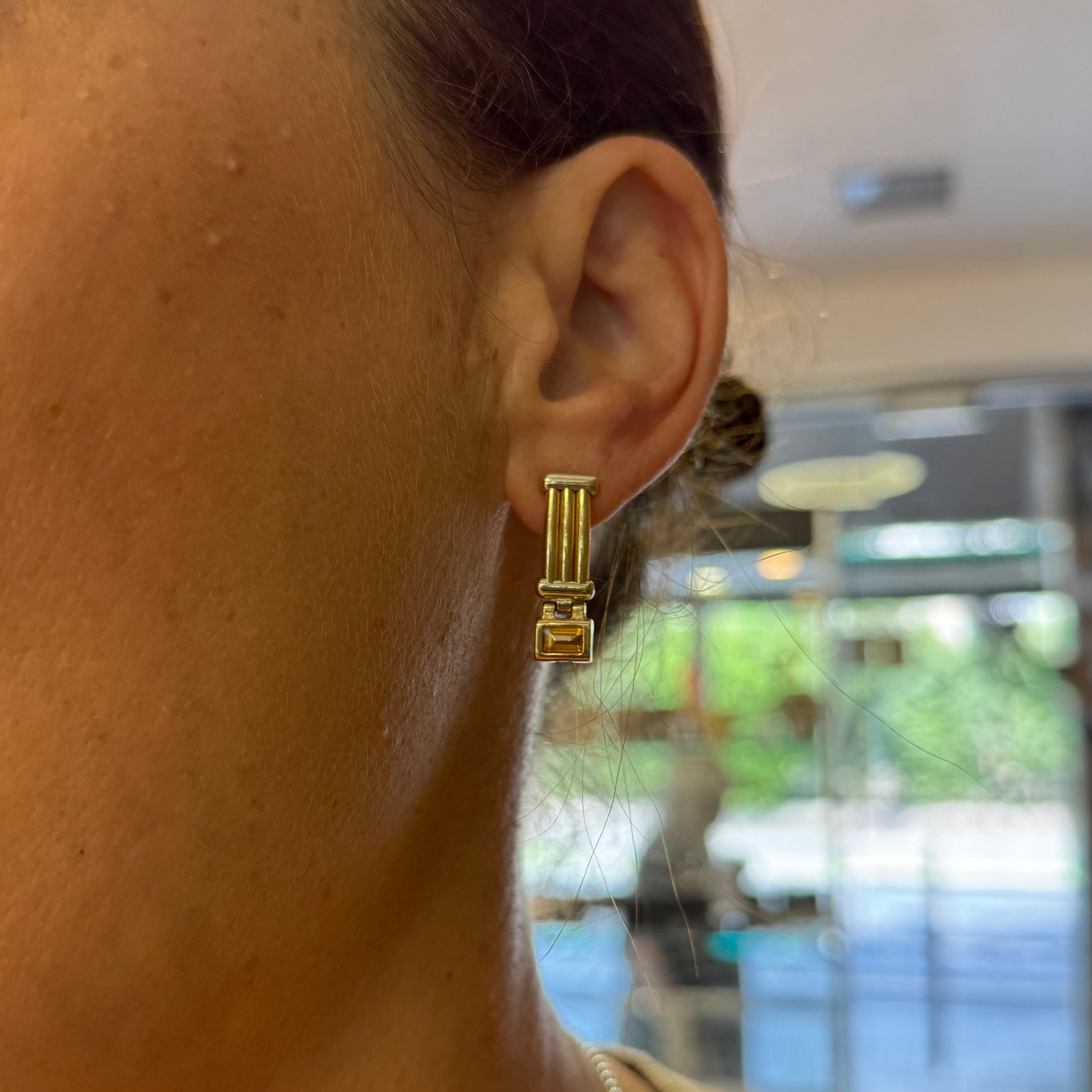 14K yellow gold stud earrings set with a warm honey-colored Citrine