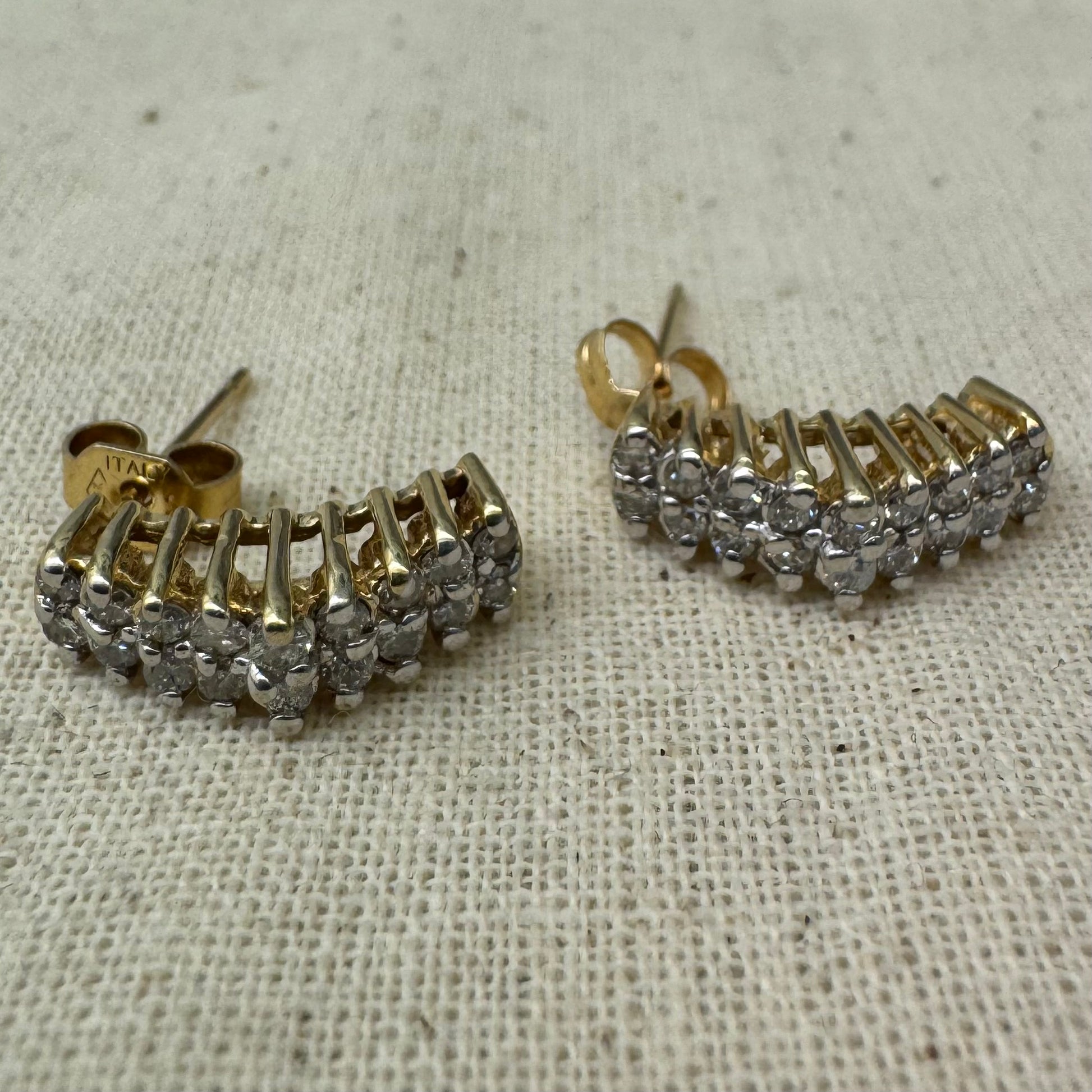 14K gold half-hoop earrings set with sparkling Diamonds in a dense pavé setting