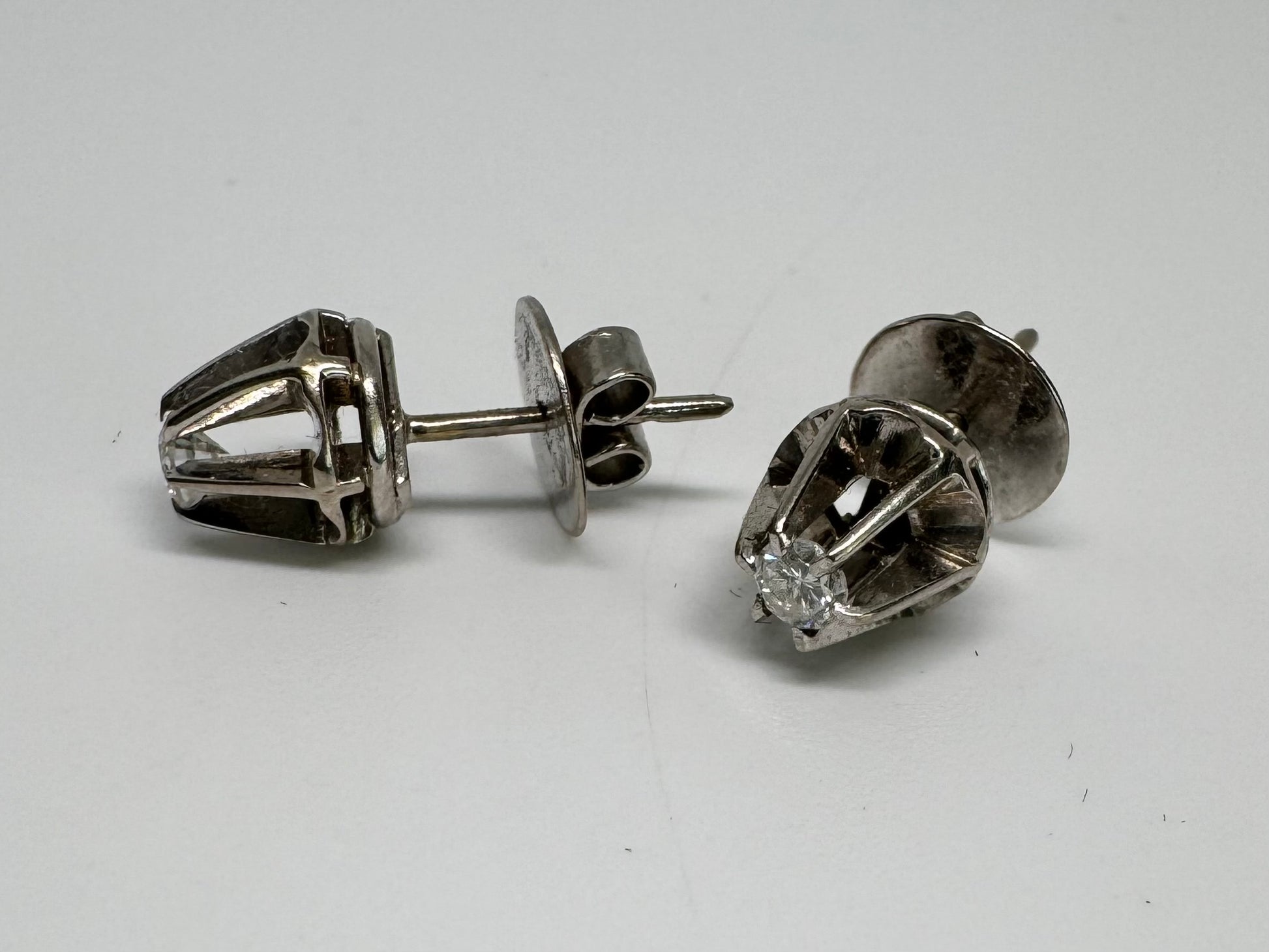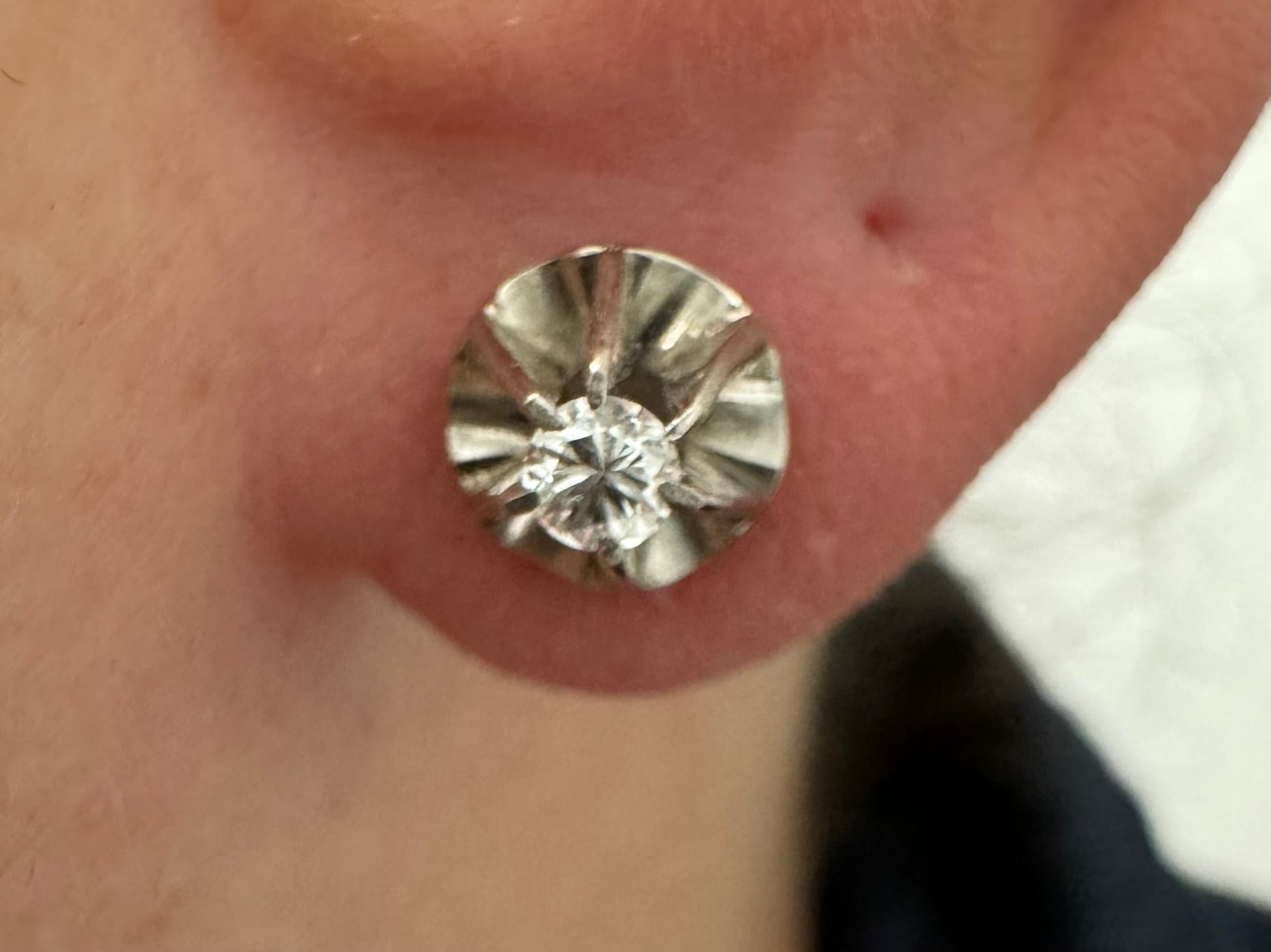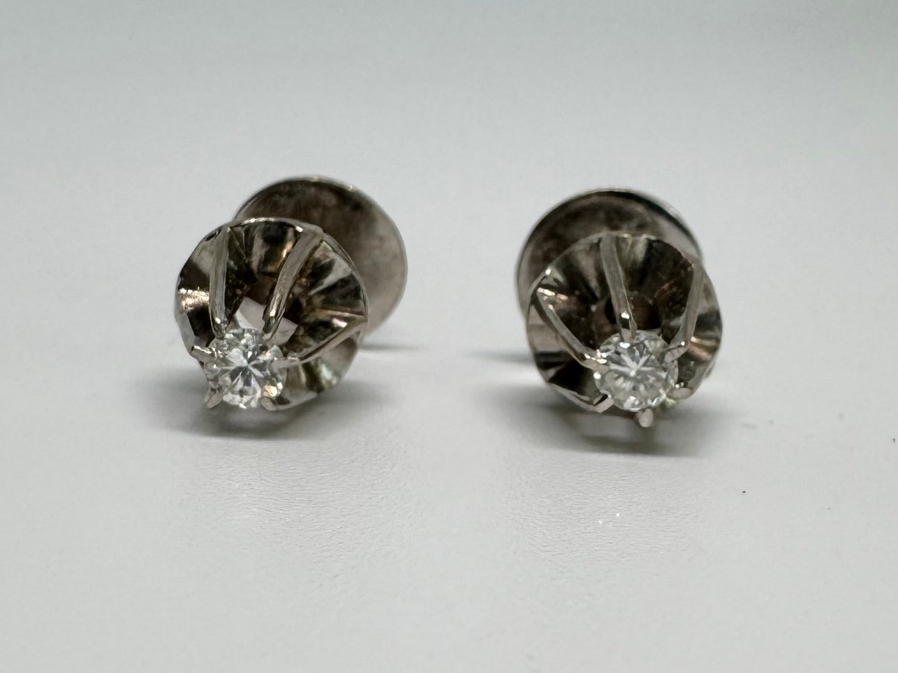 עגילי זהב לבן 14 קראט, משובצים יהלום מרכזי