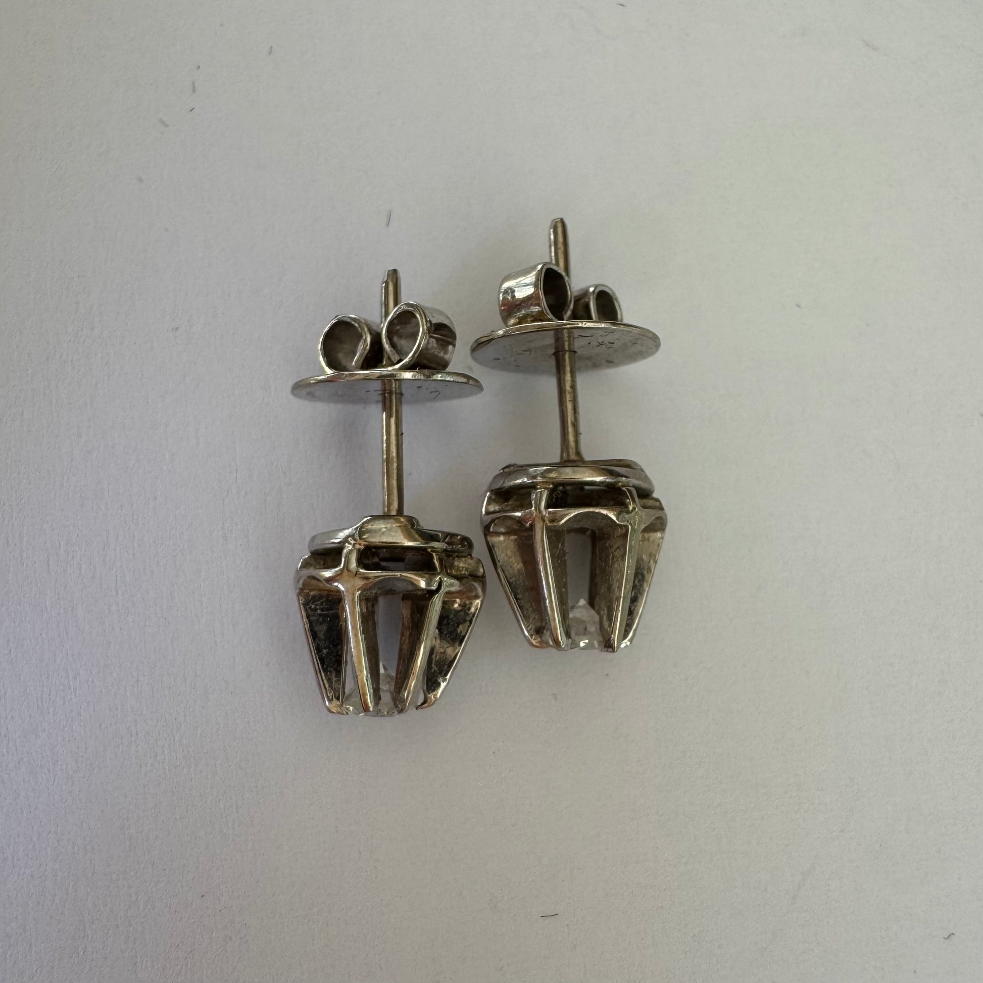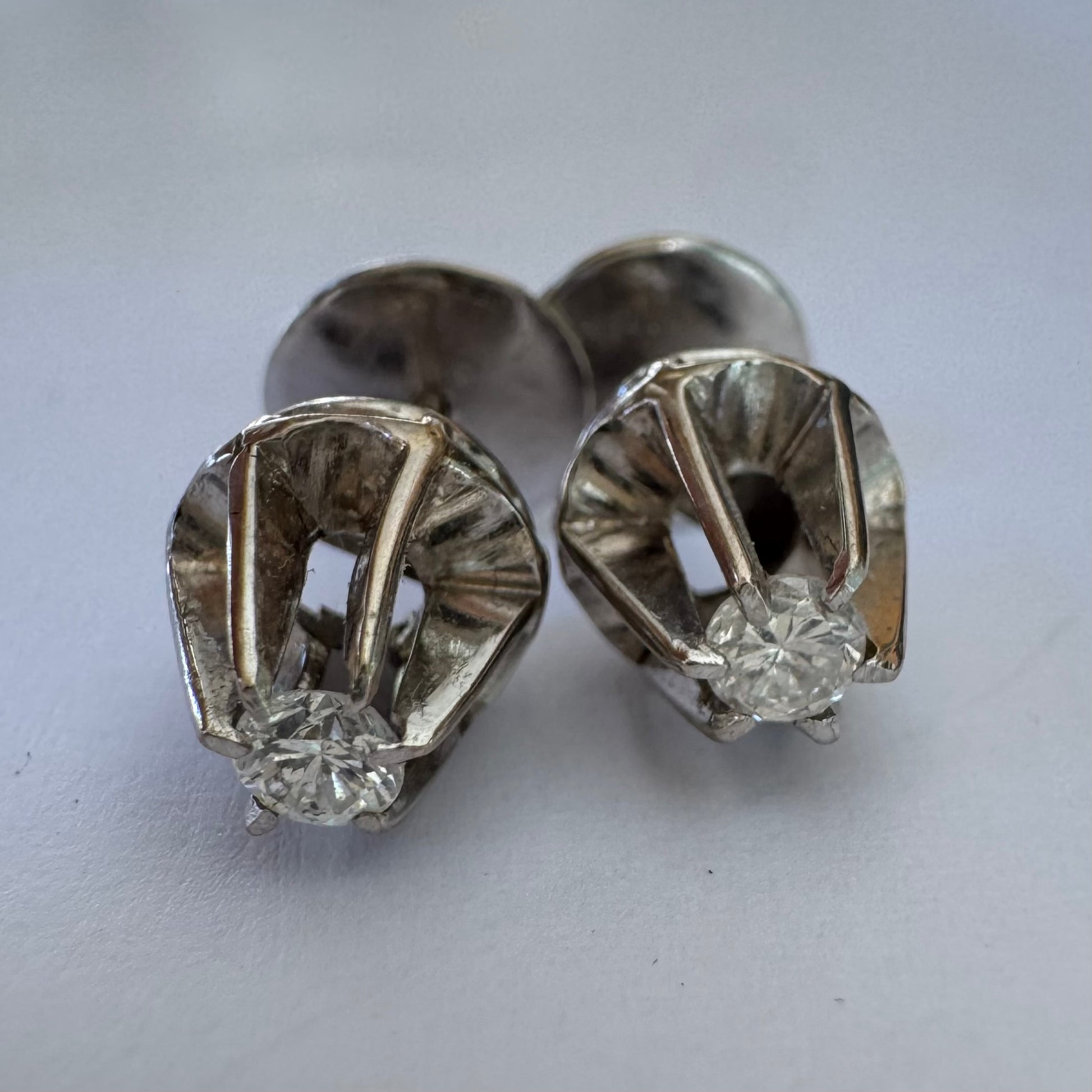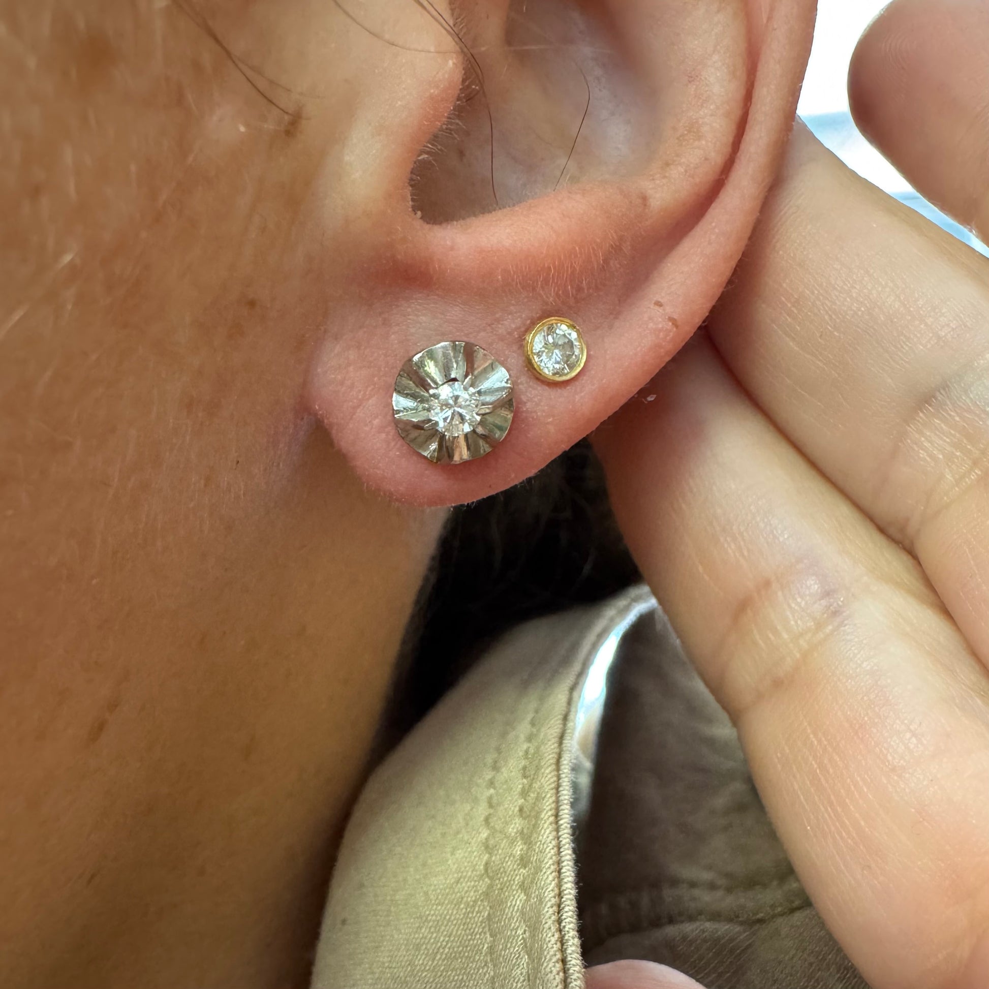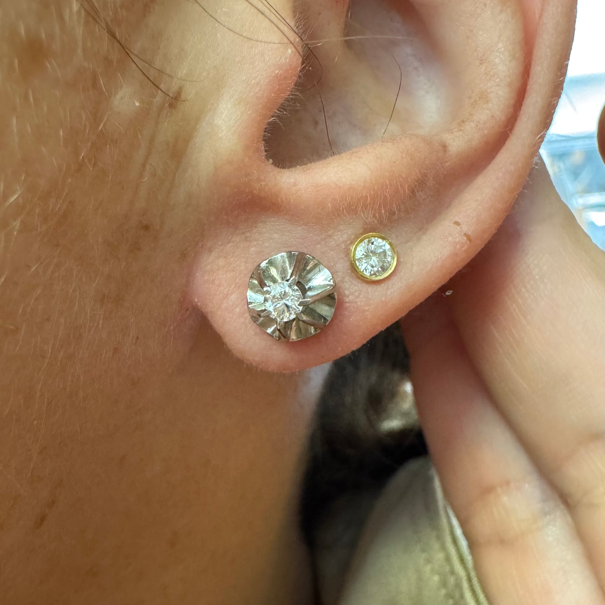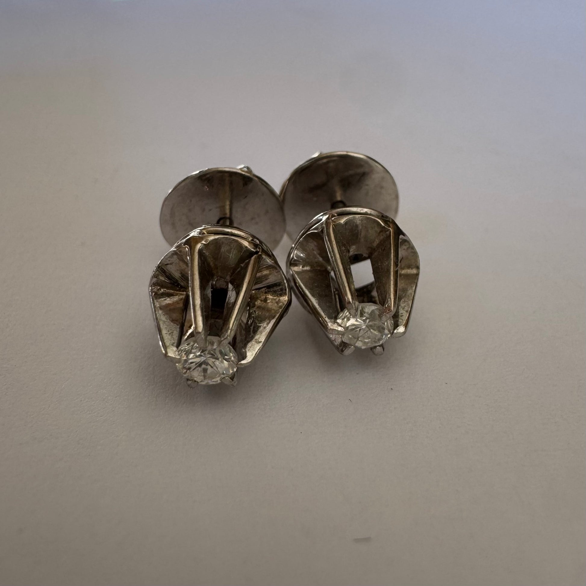 זהב לבן 14 קראט, עגילים צמודים, משובצים ביהלום מרכזי אחד