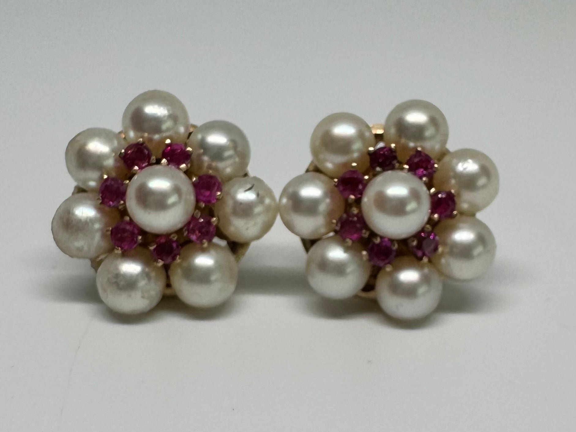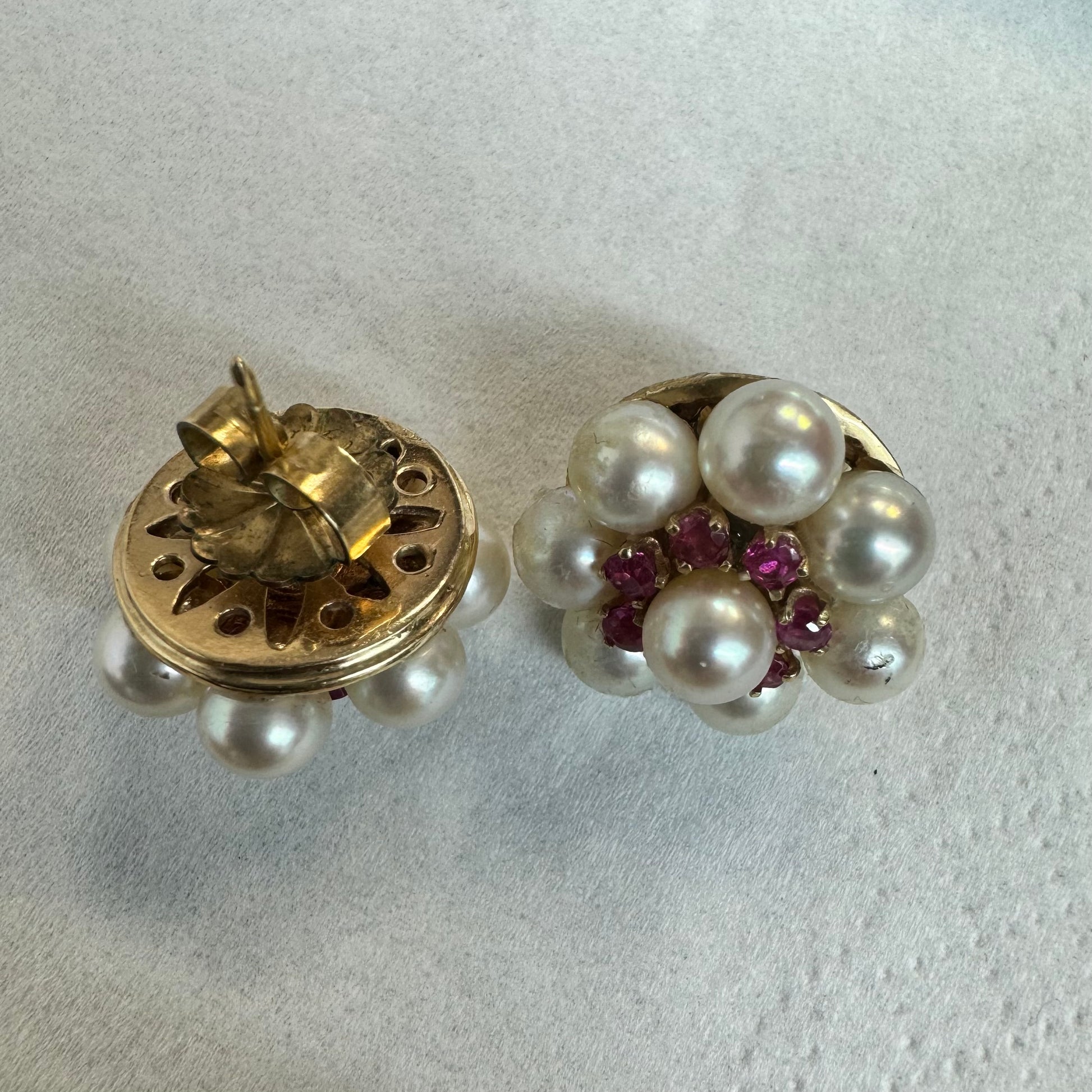 14K yellow gold stud earrings set with Ruby & Diamonds