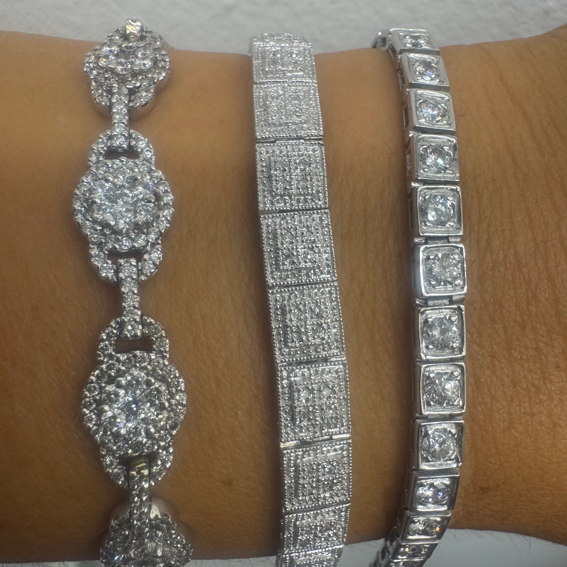 14K white gold Tennis bracelet set with rows of sparkling Diamonds in a dazzling halo design