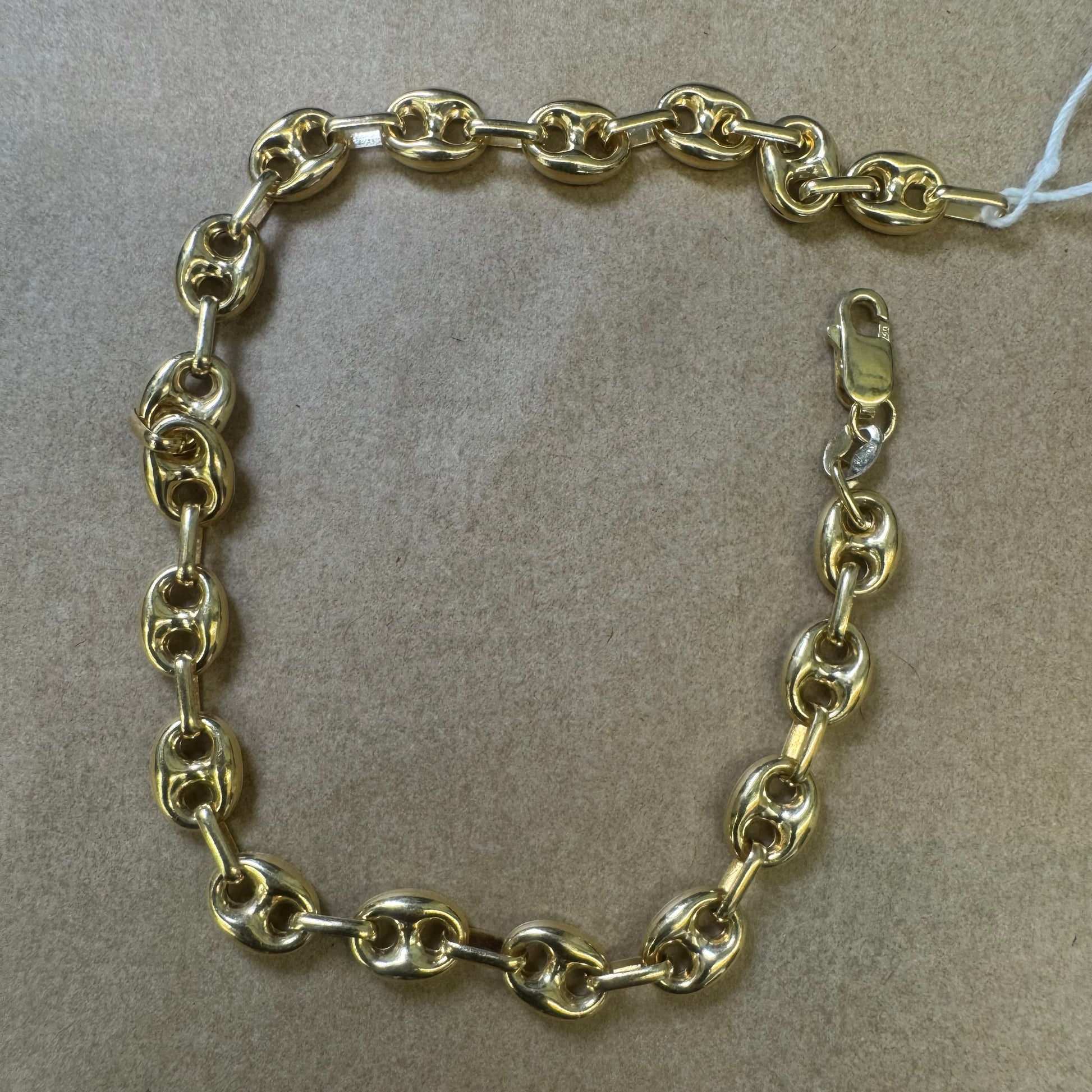 צמיד זהב צהוב 18 קראט בעיצוב חוליות מרינייר – שילוב של קלאסיות ונוכחות יומיומית.