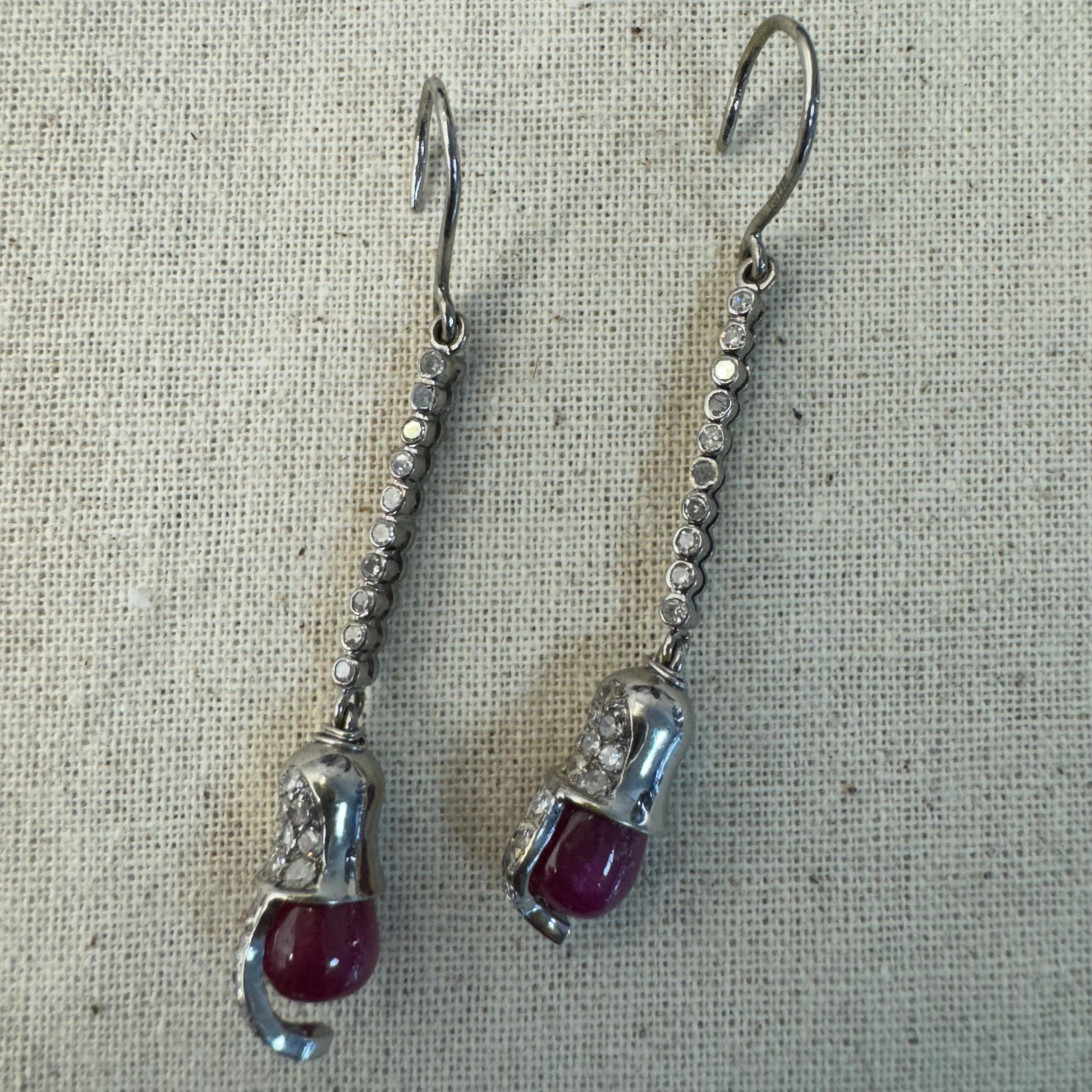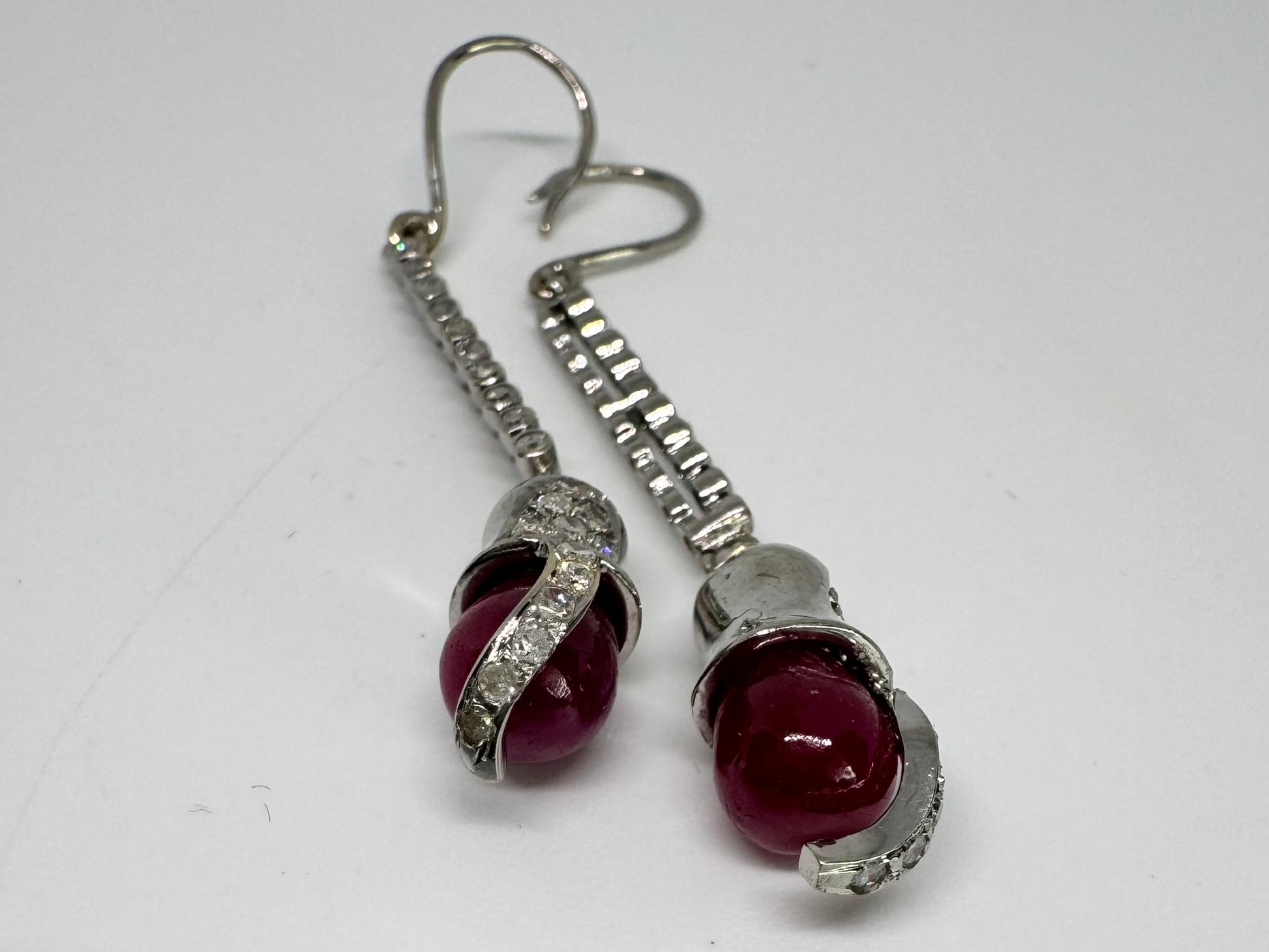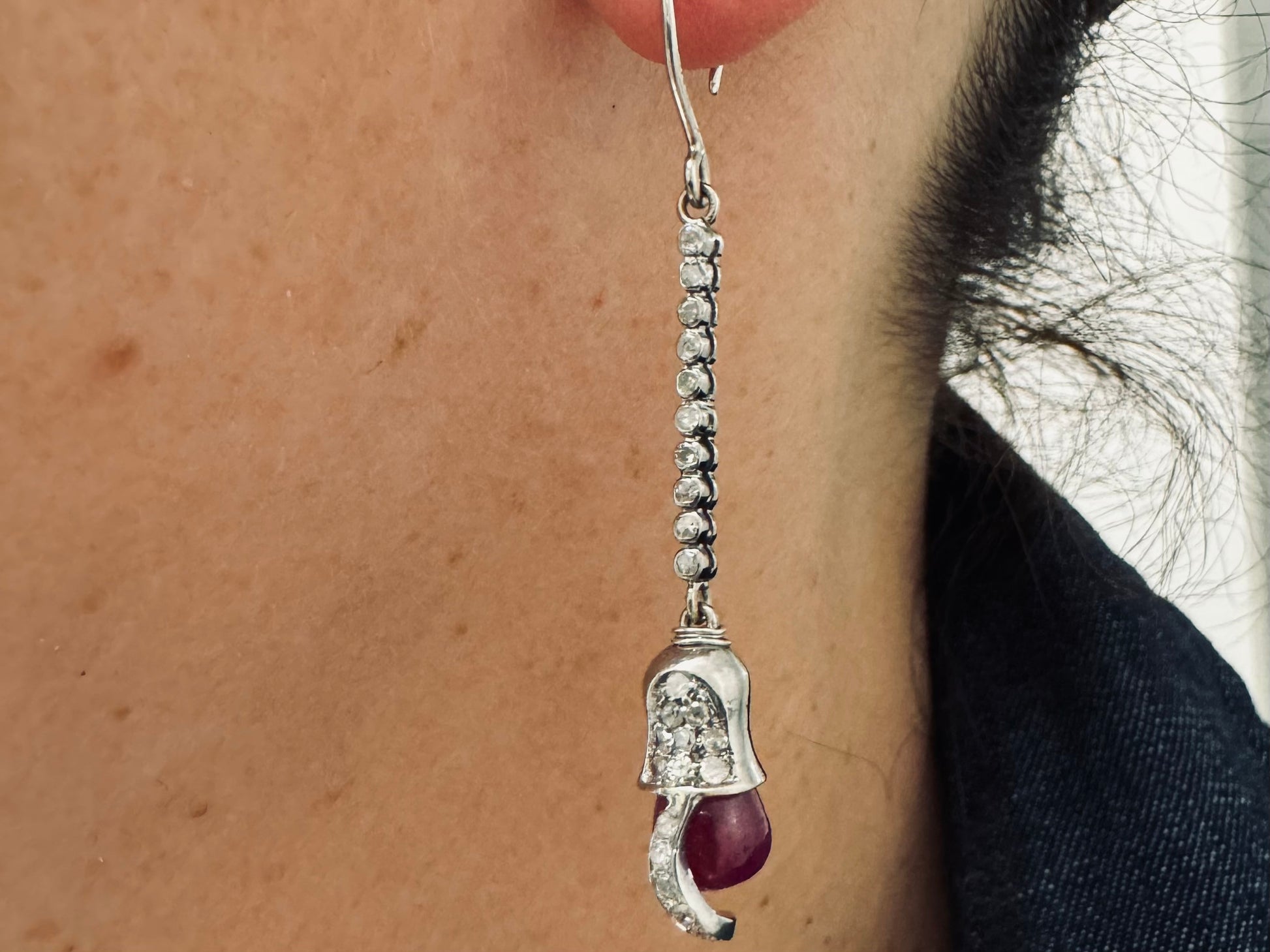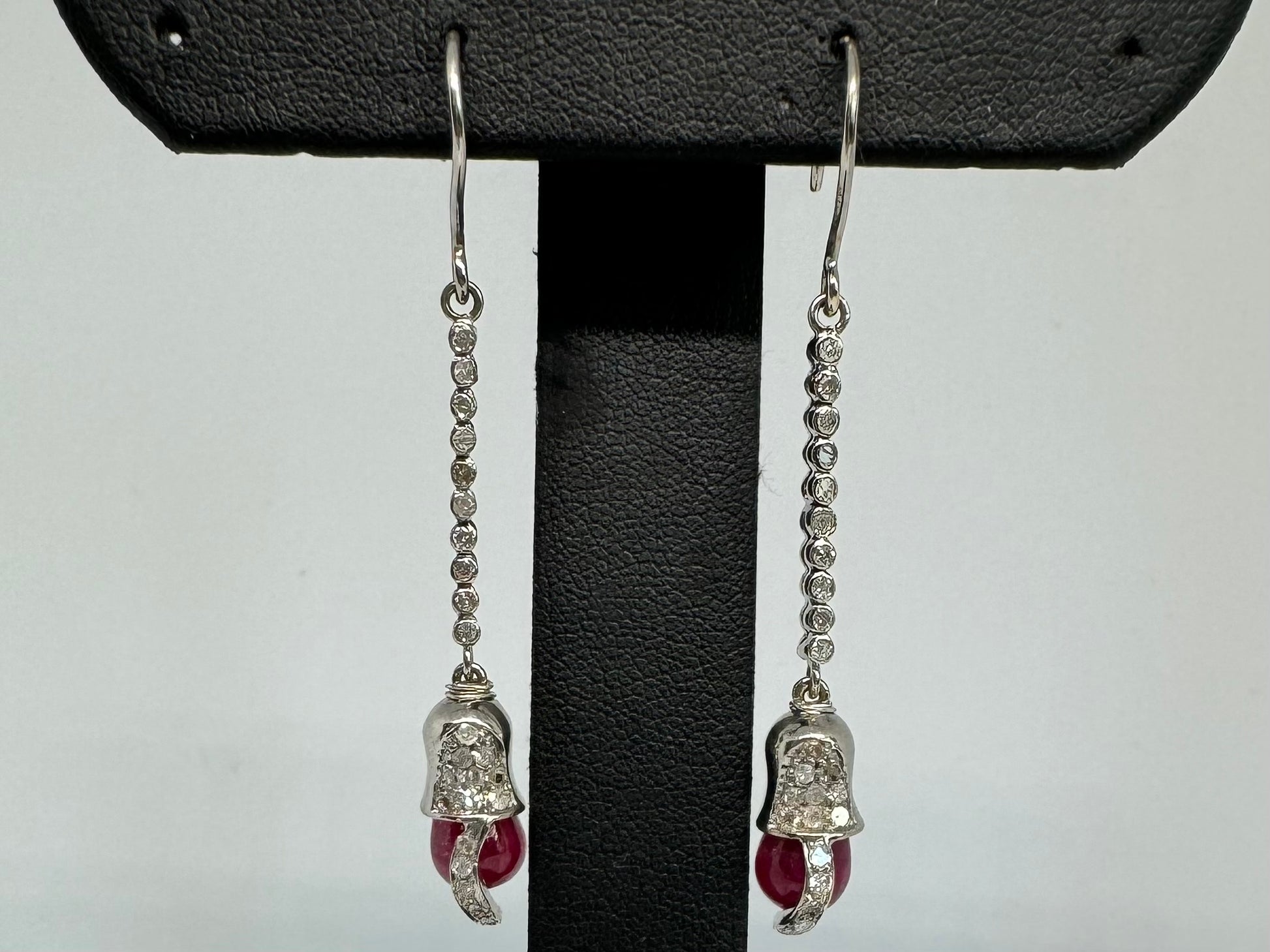 18K white gold Drop Earrings set with Ruby & Diamonds