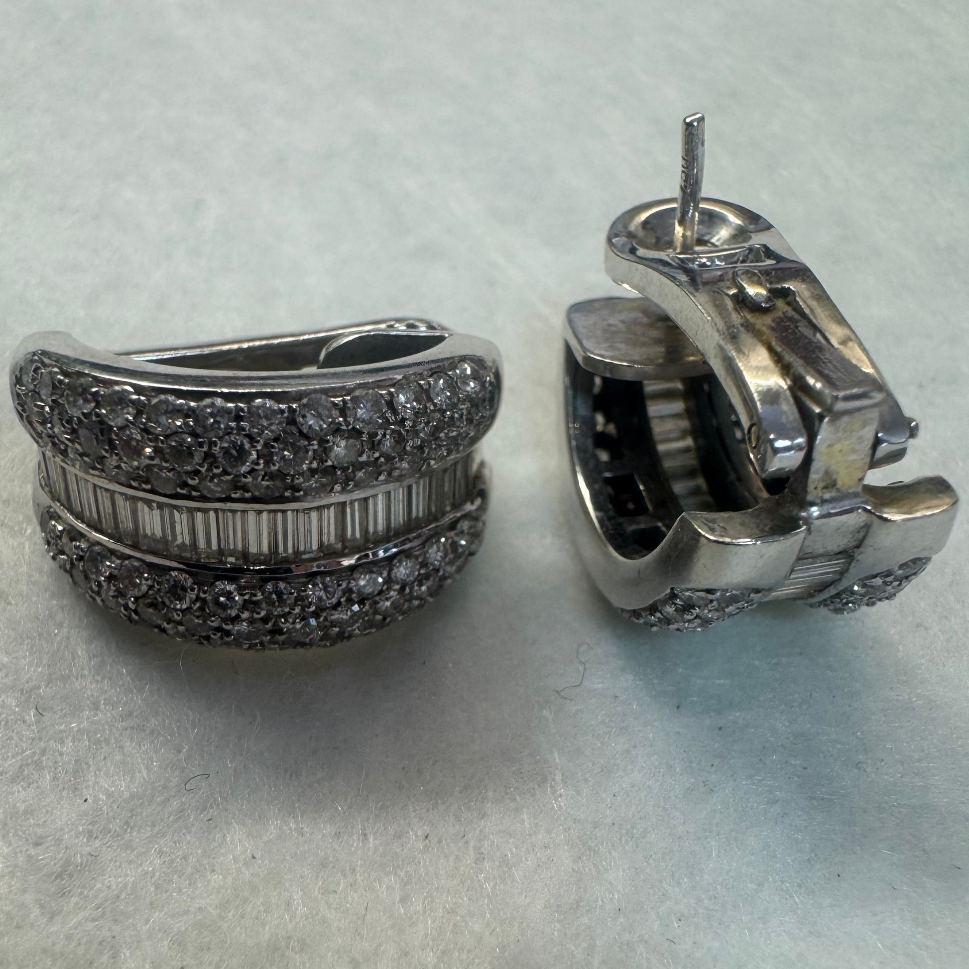 עגילי זהב לבן 18 קראט בעיצוב גיאומטרי ייחודי,