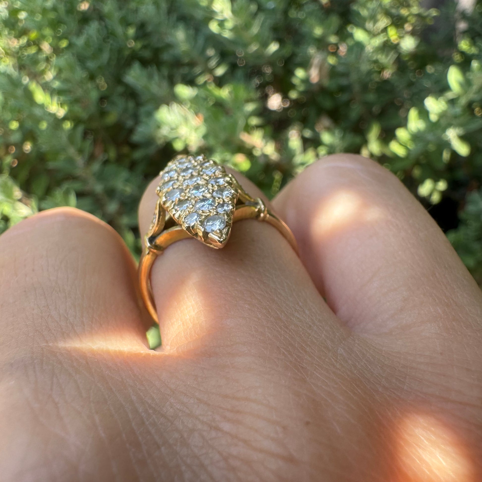 18K gold marquise-shaped ring set with multiple rows of sparkling Diamonds