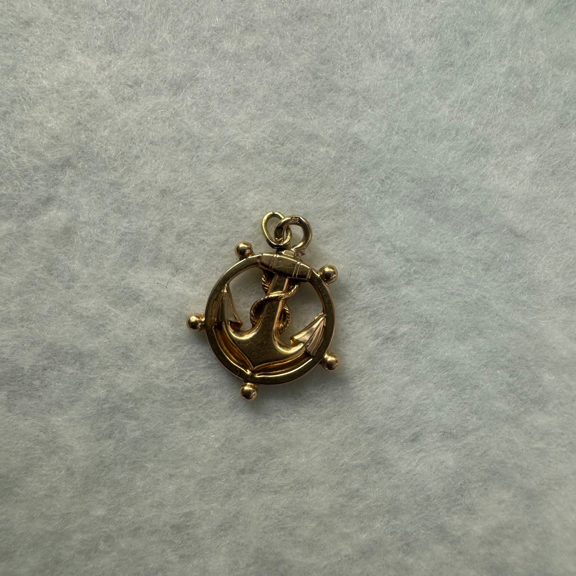 18K gold pendant featuring an anchor framed within a lifebuoy