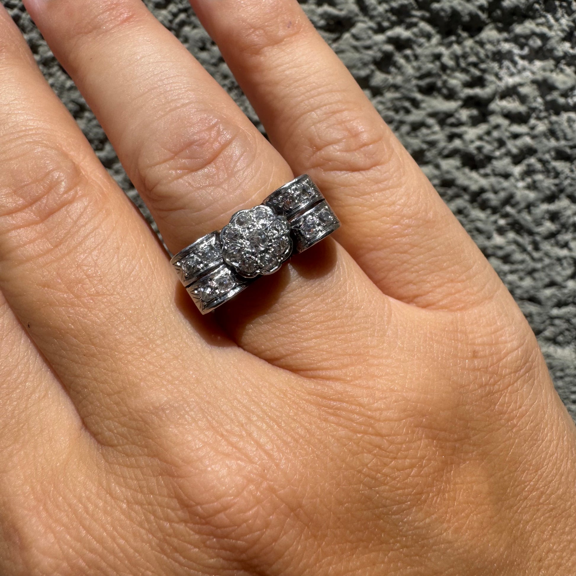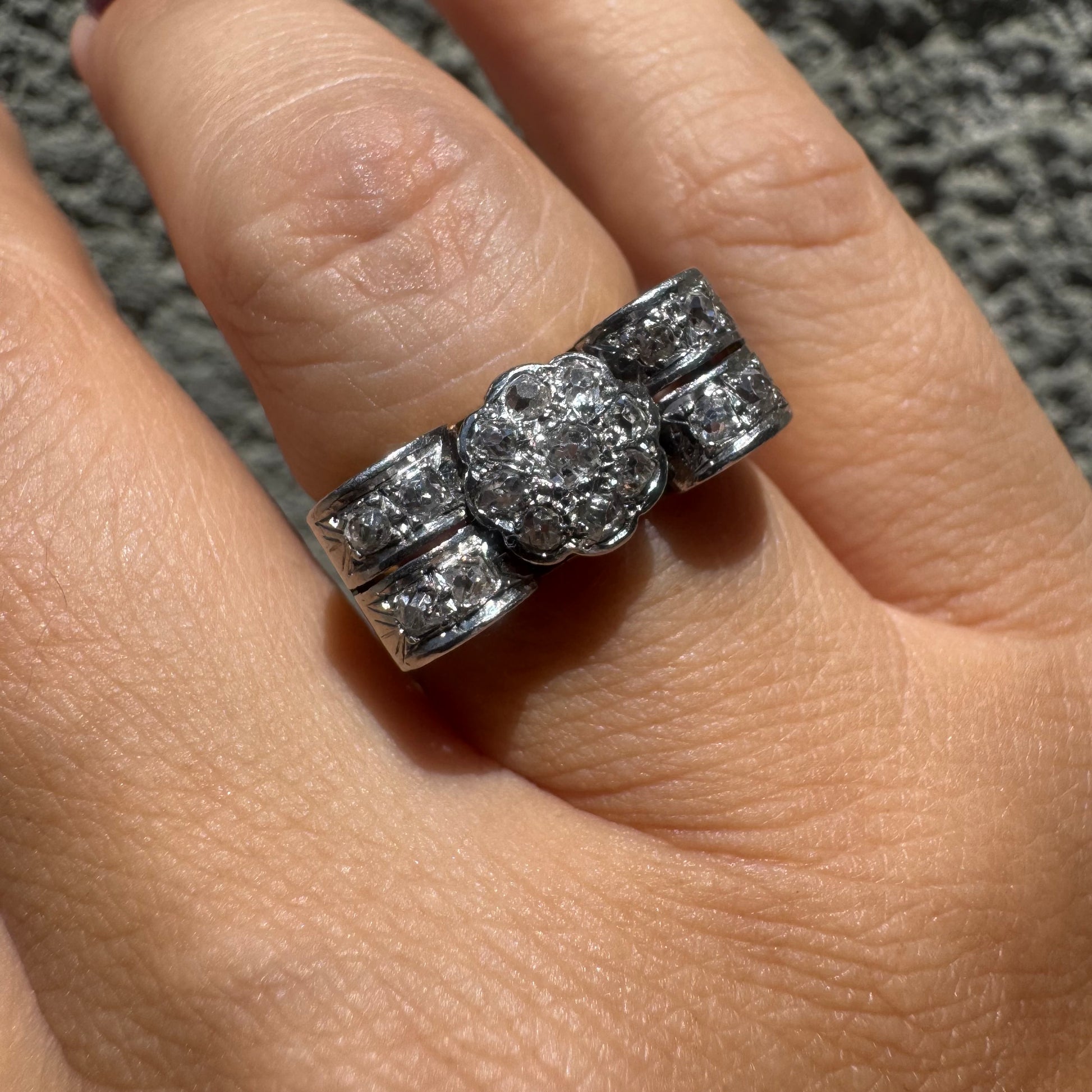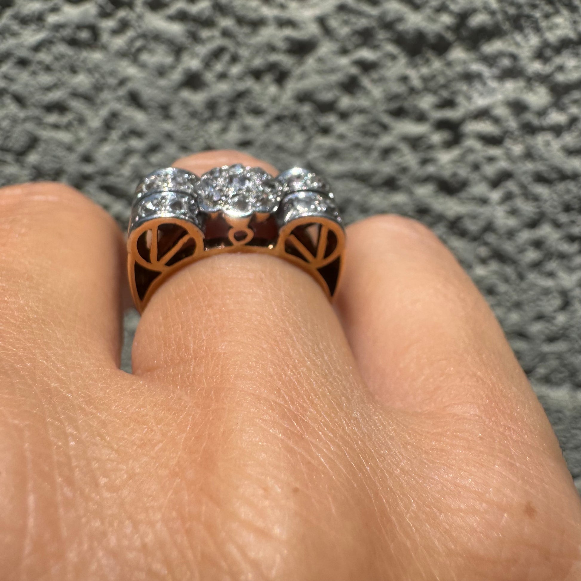 18K gold ring featuring a flower-shaped design set with antique Diamonds