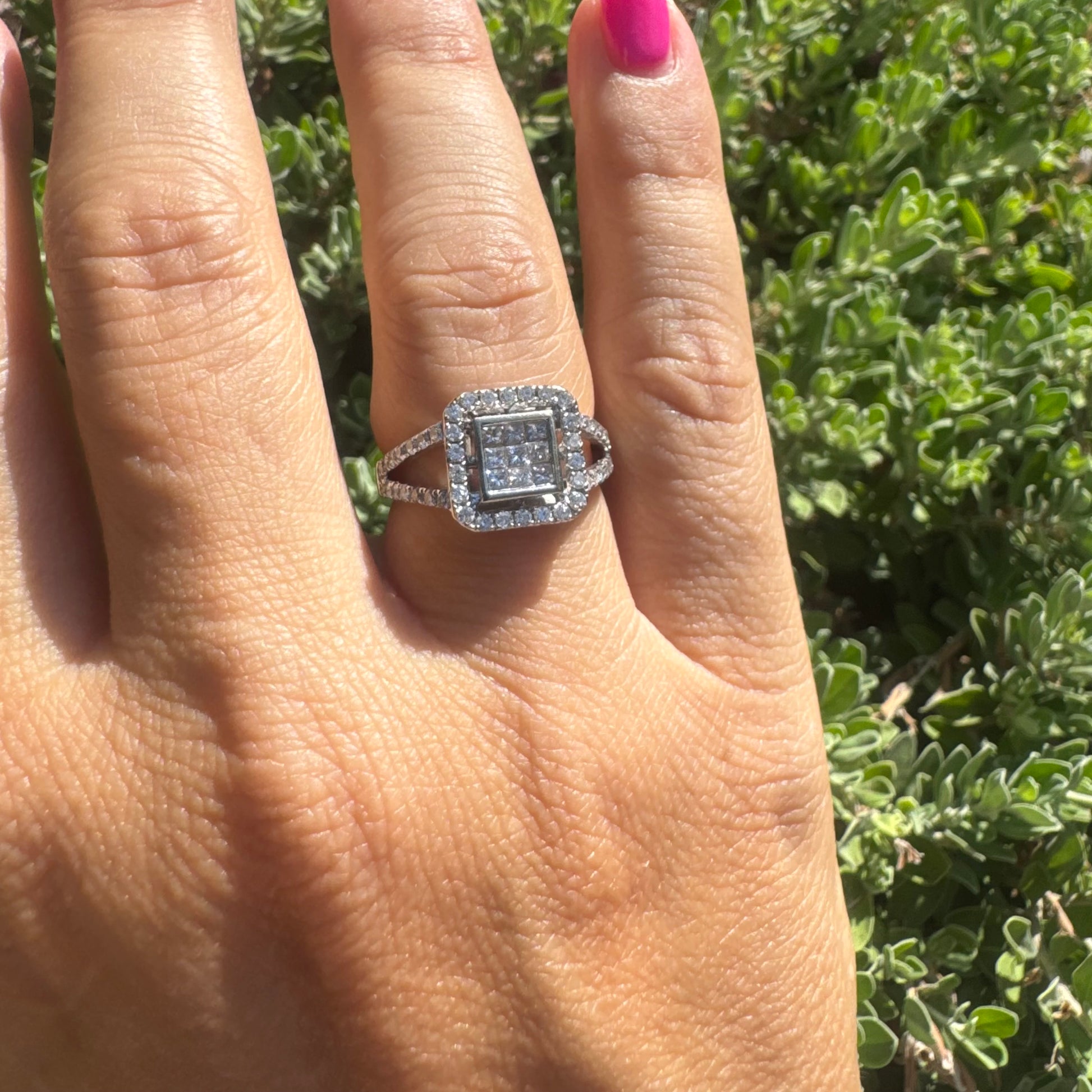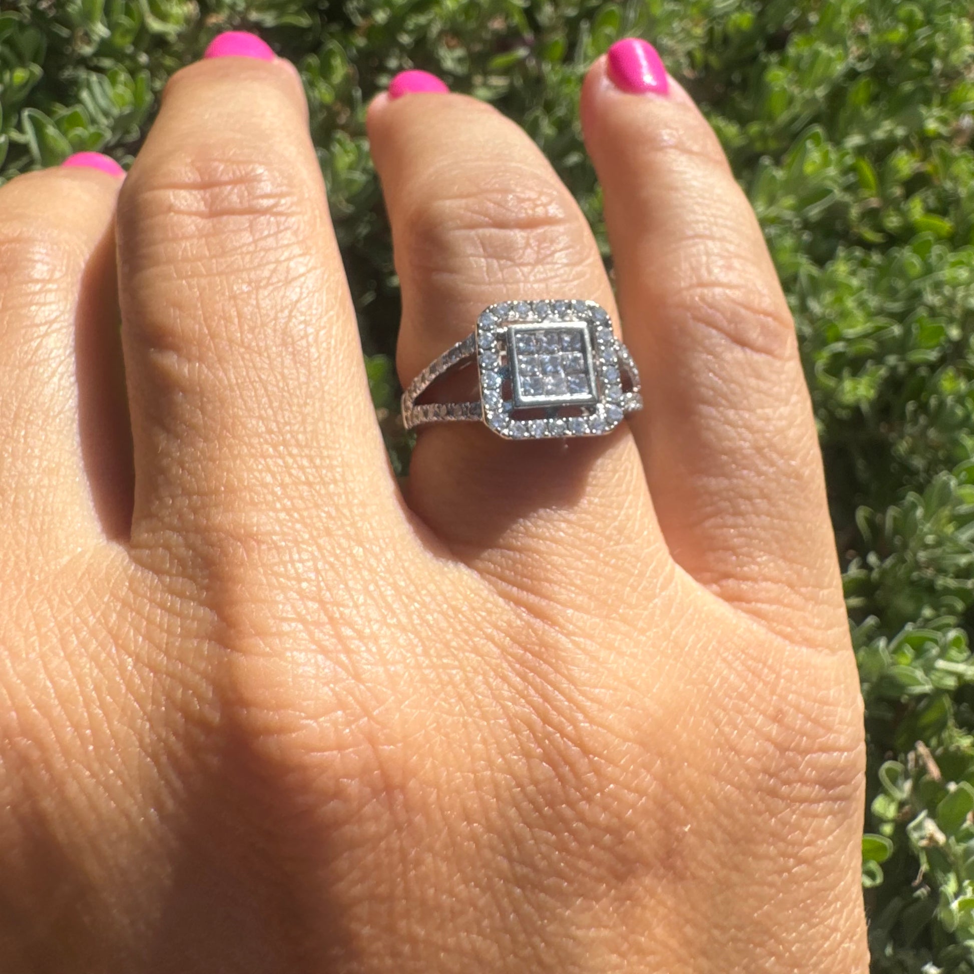 טבעת זהב לבן 18 קראט משובצת יהלומים בחיתוכים שונים- מרובע ועגול