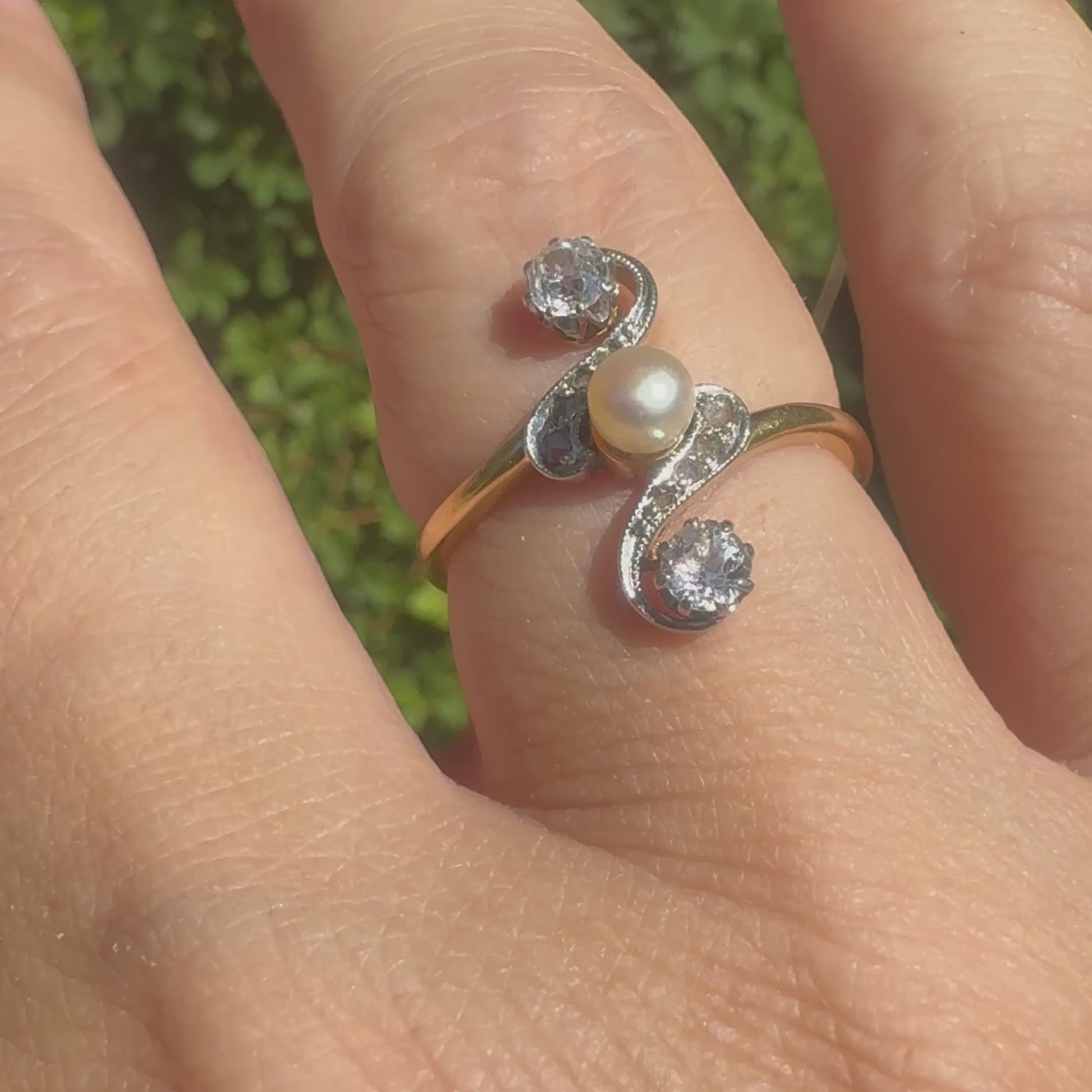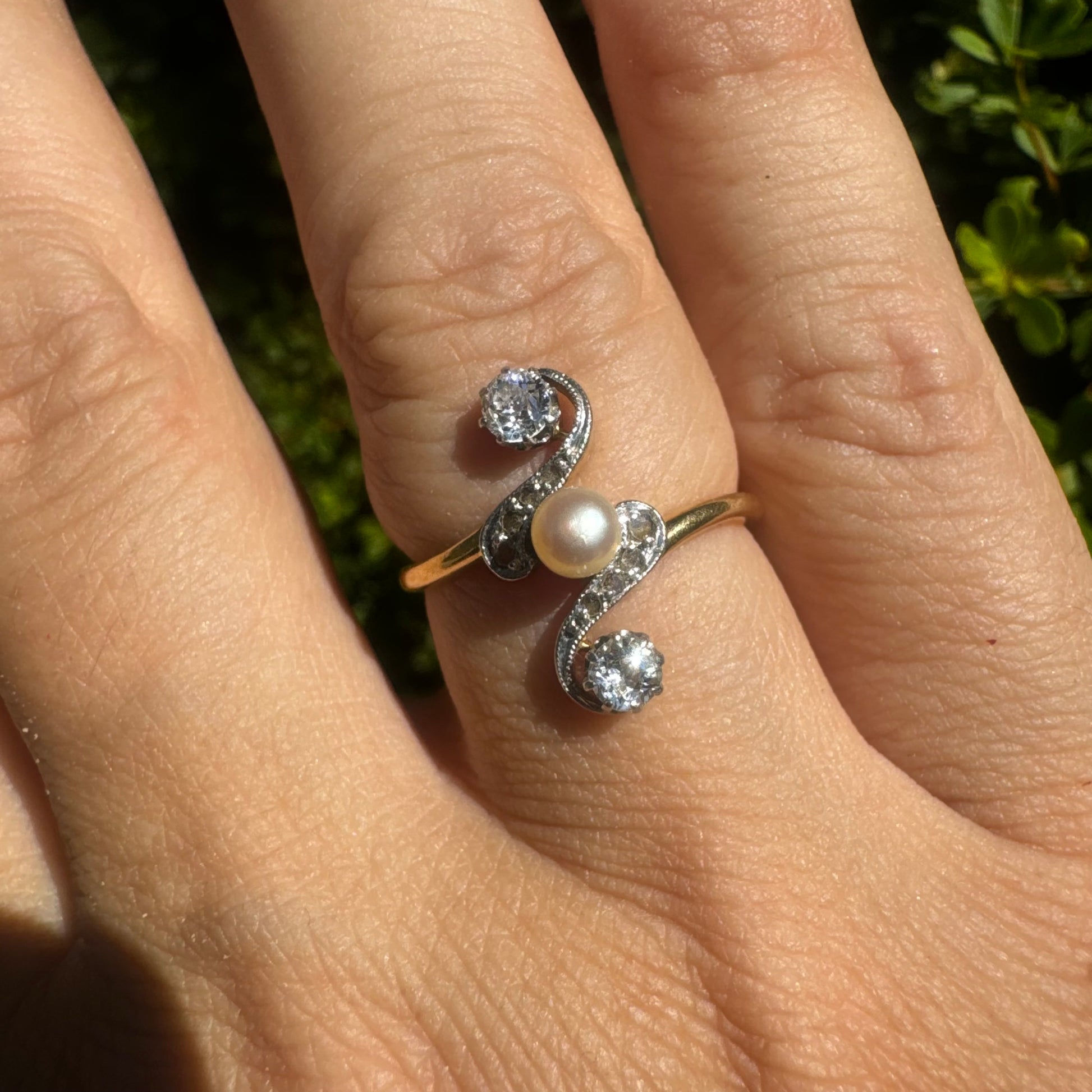 טבעת זהב 18K משובצת פנינה ויהלומים