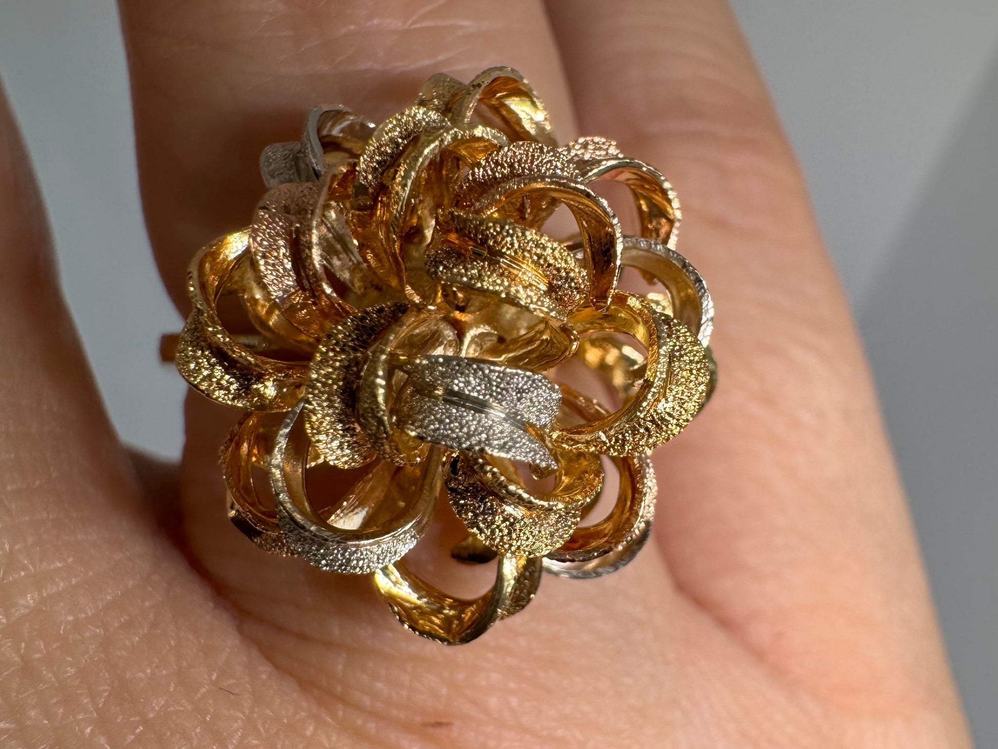 טבעת זהב 18 צהוב, לבן ועדום, 18 קראט.
